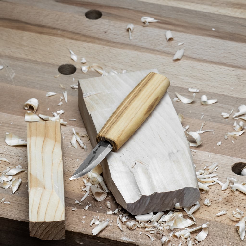 Sada BEAVERCRAFT obsahuje nože s různými délkami čepele a využitím. Najdeme zde třískový, odřezávací, řezbářský, geometrický, detailový, lžícový nůž a lžícovité řezbářské...