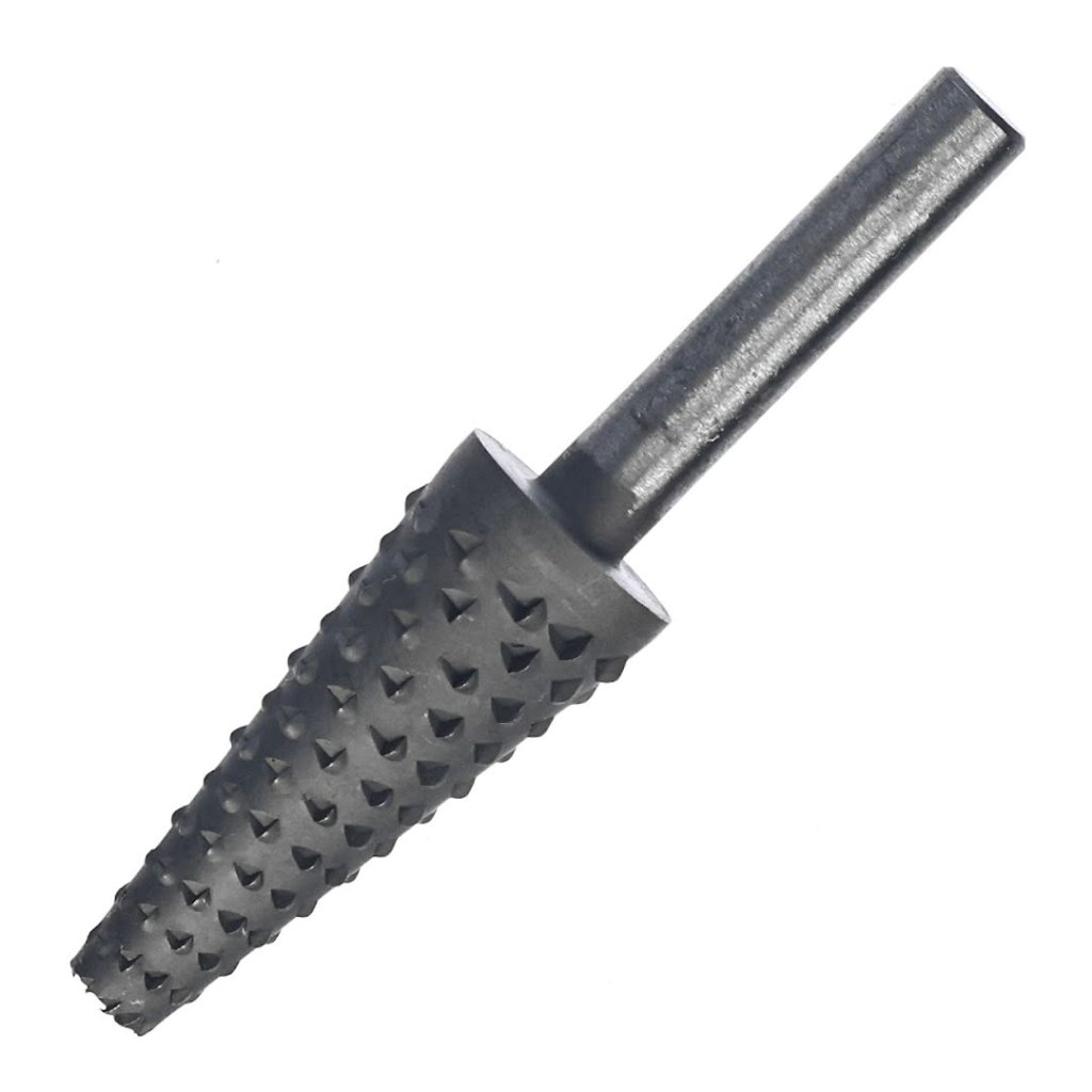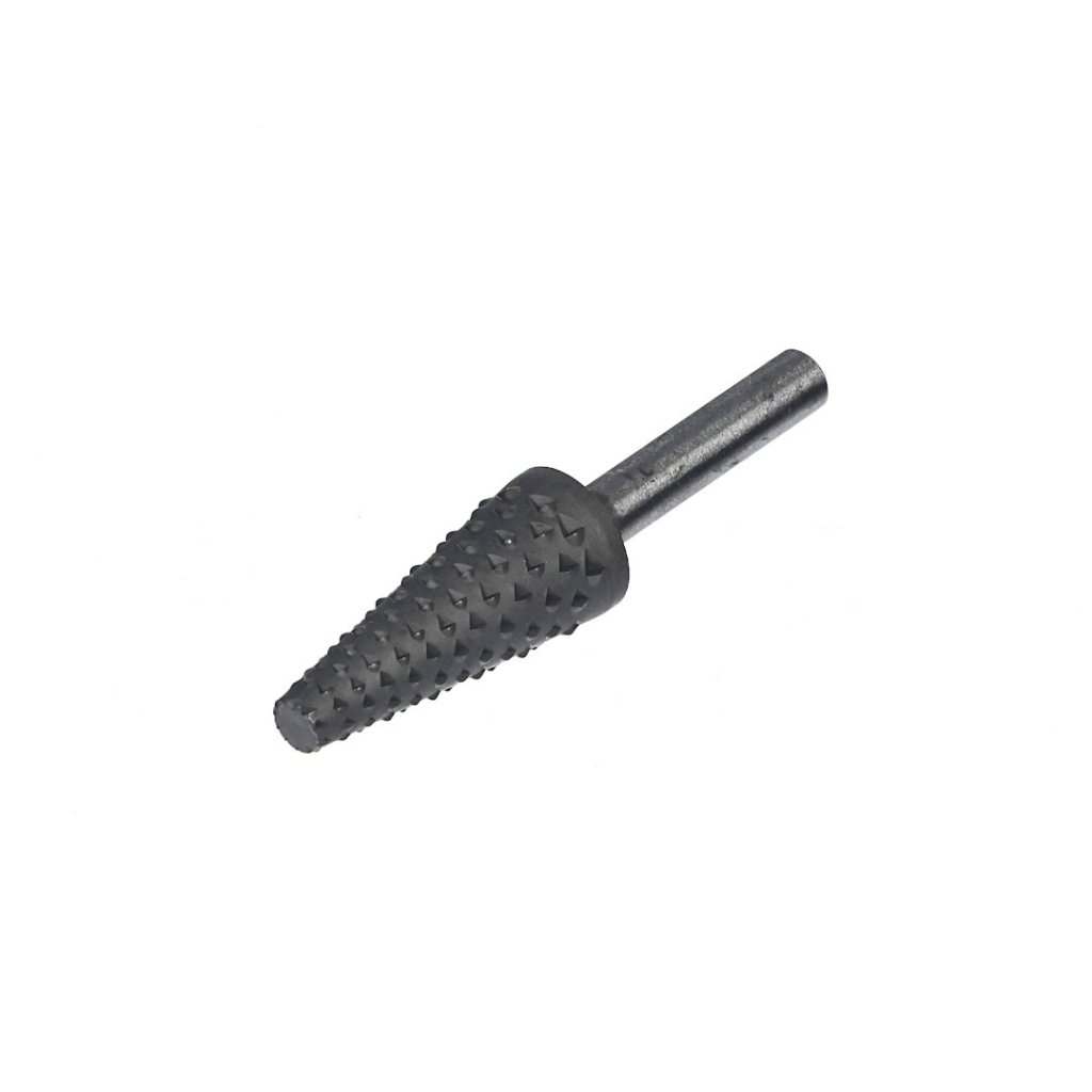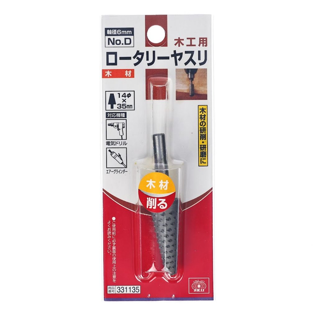 Rotační kuželová rašple na dřevo SK11 No.D je ideální pro tvarování a broušení dřevěných materiálů. Vhodný pro použití s elektrickými vrtačkami a pneumatickými bruskami, tento nástroj zajišťuje přesnost díky stopce o průměru 6 mm a šířce broušení 14 mm. Pro optimální výkon používejte rychlosti pod 10000 ot./min.