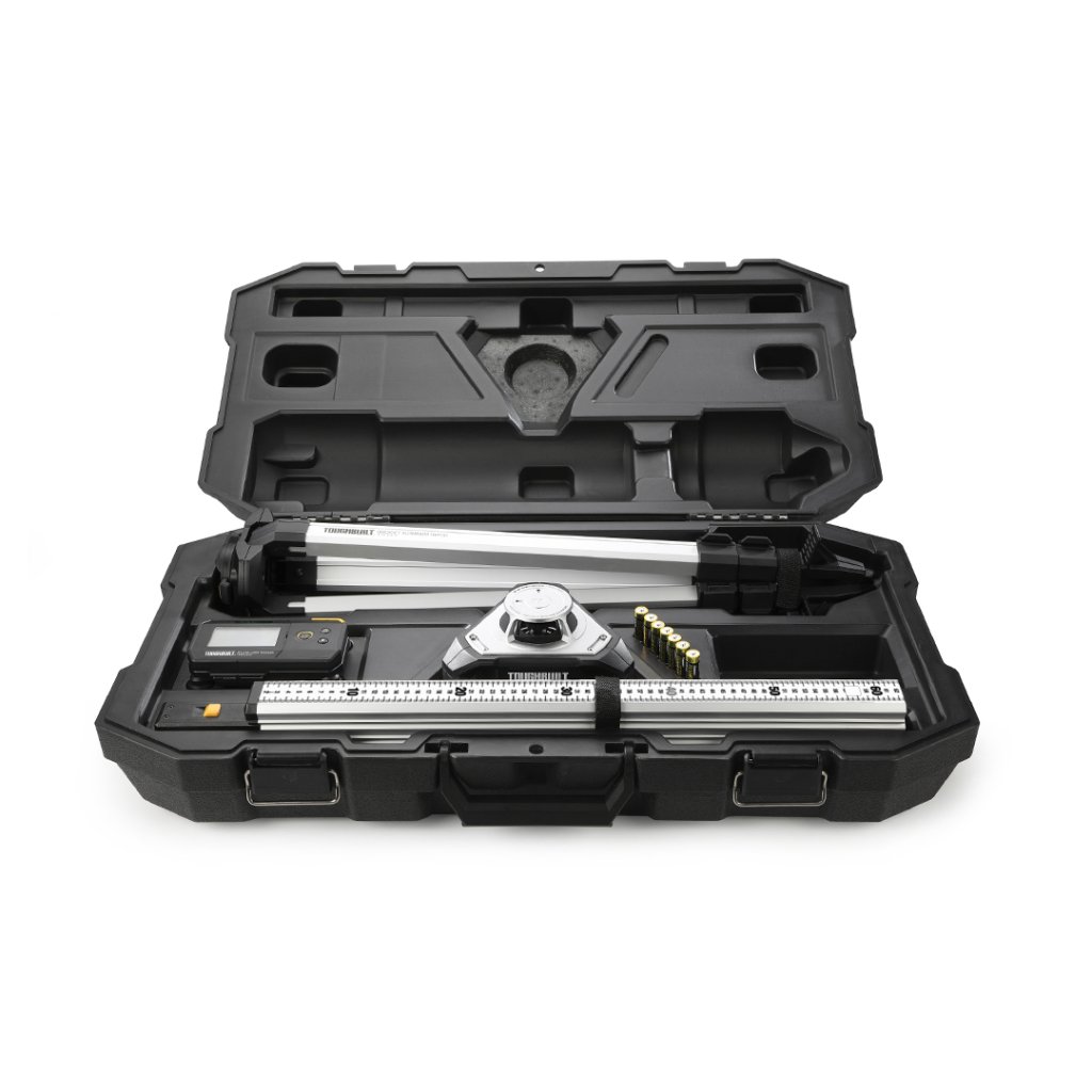 Samonivelční laser TOUGHBUILT® 150m Rotary Laser Level Kit ideální pro geodetické práce a terénní úpravy. V odolném plastovém kufru naleznete komplexní řešení - rotační laser, nivelační tyč a stativ. Zelený laserový paprsek je díky jeho intenzitě vidět i za jasného denního světla. Dosah paprsku je maximálně 150 m. Tělo laseru je určeno pro použití v těžkých pracovních podmínkách.