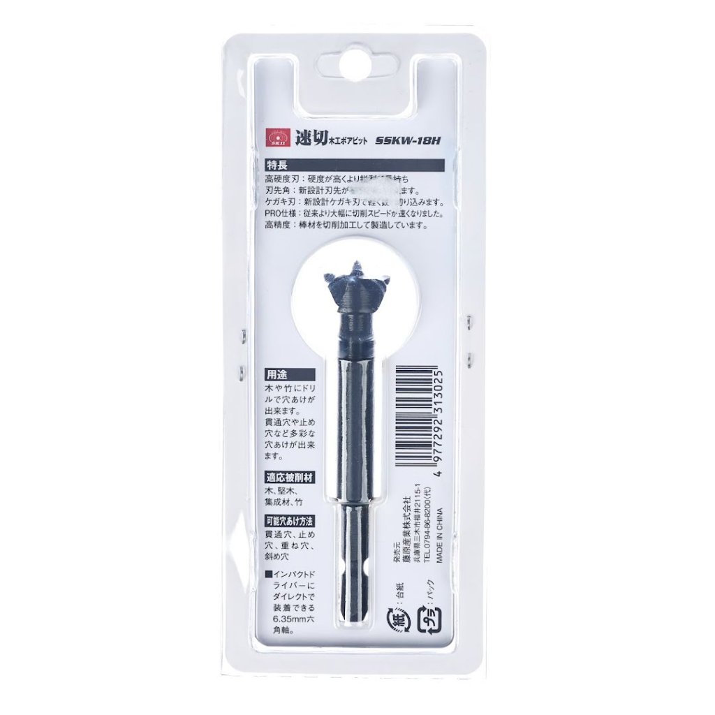 Sukovník SK11, model SSKW-18H, je navržen pro rychlé a přesné vrtání do různých materiálů, včetně dřeva, masivního dřeva, kompozitních materiálů a bambusu. Tento vrták má průměr 18 mm a celkovou délku 90 mm, což ho činí vhodným pro širokou škálu aplikací, jako jsou průchozí otvory, slepé otvory, překrývající se otvory a šikmé otvory. Jeho vysoce tvrdé ostří zajišťuje ostřejší vrtání ve srovnání s konvenčními vrtáky, zatímco speciální čepel umožňuje lehčí a přesnější řezy. Tento vrták lze přímo připojit k běžným vrtačkám, díky své 6,35 mm šestihranné stopce.