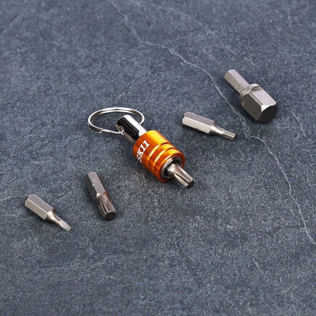 Držák bitů s rychloupínáním SK11 je profesionální nástroj navržený k držení klíčů a bitů, který zabraňuje jejich nechtěnému uvolnění. Vyrobeno z hliníku. 6,35 mm dřík a 2-kuličkový zámek zvyšují bezpečnost zajištěním pevného uchopení, zatímco nárazuvzdorná konstrukce chrání před nečekaným uvolněním. Je ideální pro ty, kteří upřednostňují bezpečnost a efektivitu při používání nářadí.