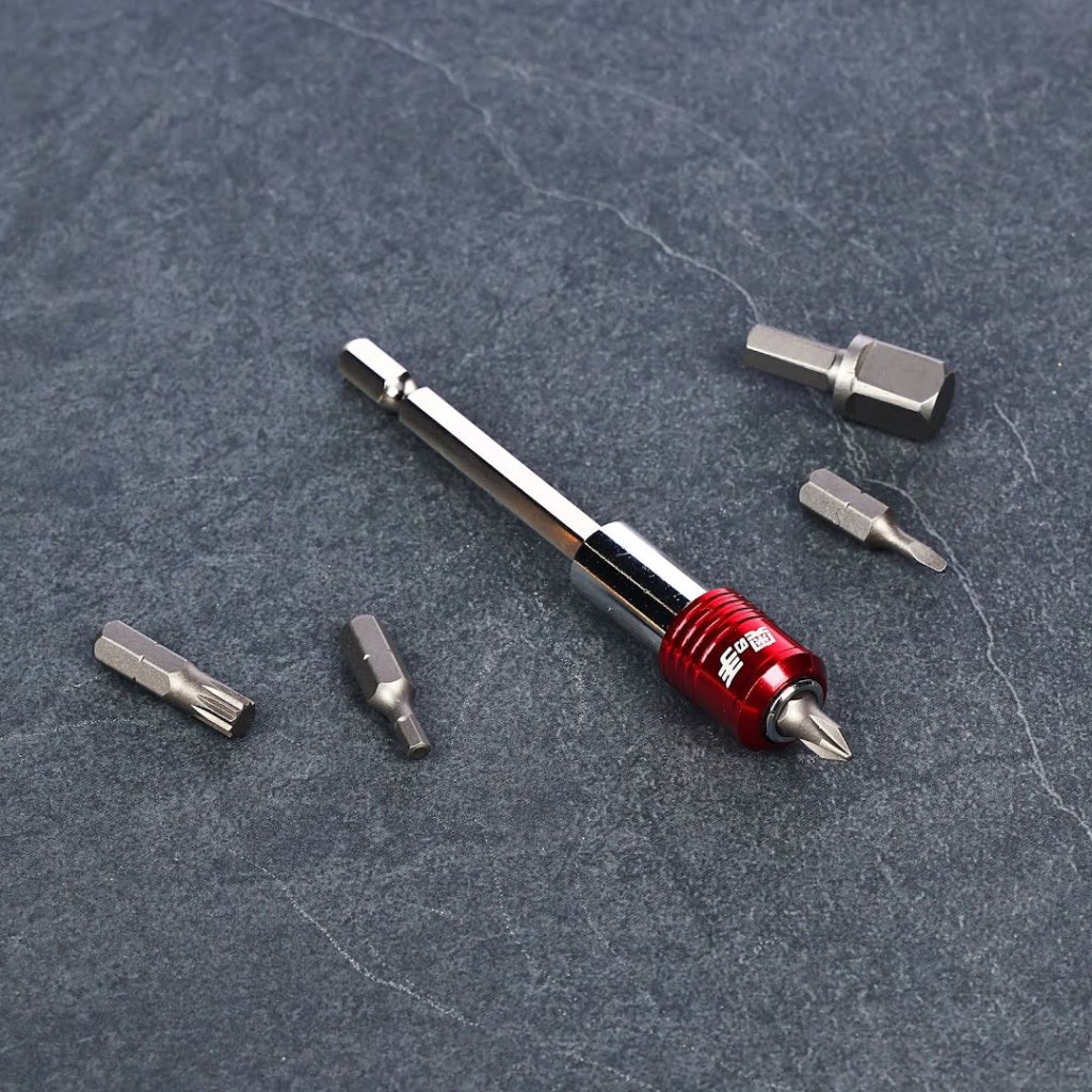 Rychloupínací nástavec SK11, model SHE-100, je navržen tak, aby prodloužil dosah v úzkých nebo zapuštěných prostorech, kam se samotný bit nedostane. Díky rychloupínacímu sklíčidlu na jedno stisknutí umožňuje snadné připevnění bitu jednoduchým zatlačením. Tento prodlužovací nástavec je kompatibilní s 40V akumulátorovými rázovými utahováky, což z něj činí všestranný doplněk každé sady nářadí. S celkovou délkou 100 mm a hmotností 40 g je lehký a praktický pro různé úkoly.