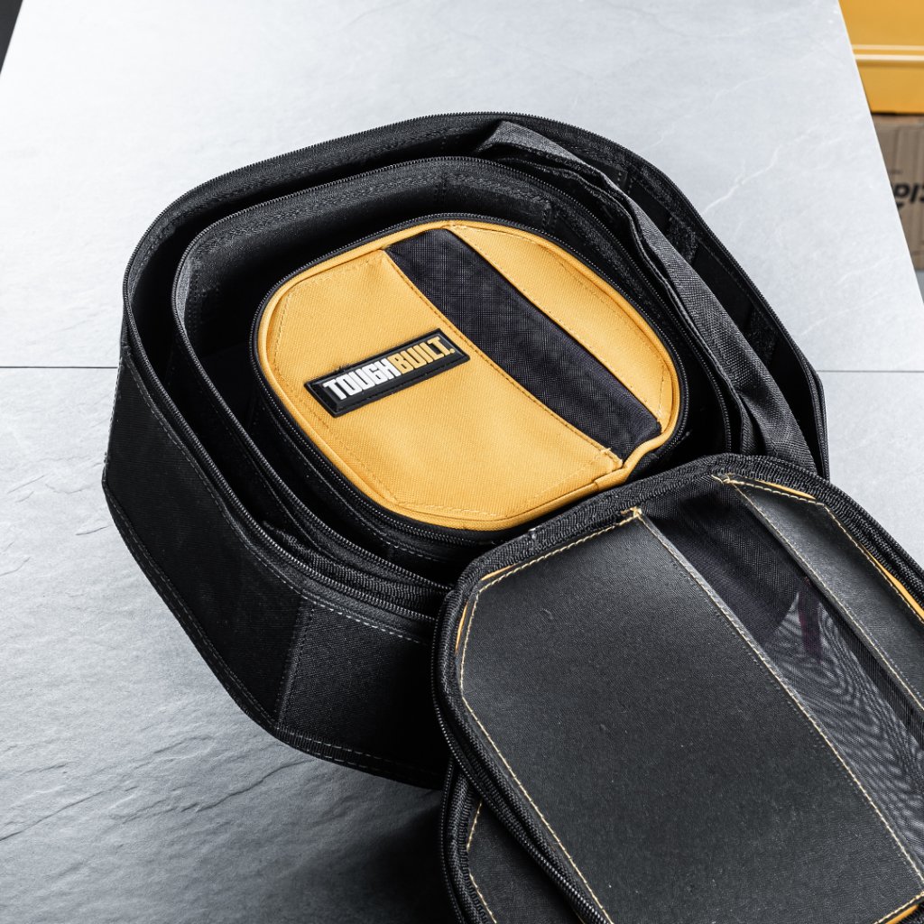 Vyztužená textilní pouzdra na nářadí značky TOUGHBUILT® 3-Pack Toolmate Softboxes určená pro přehlednost vašeho nářadí. Ikonické žluto-černé organizéry, které se vám budou hodit k uskladnění i převozu nářadí či materiálu.