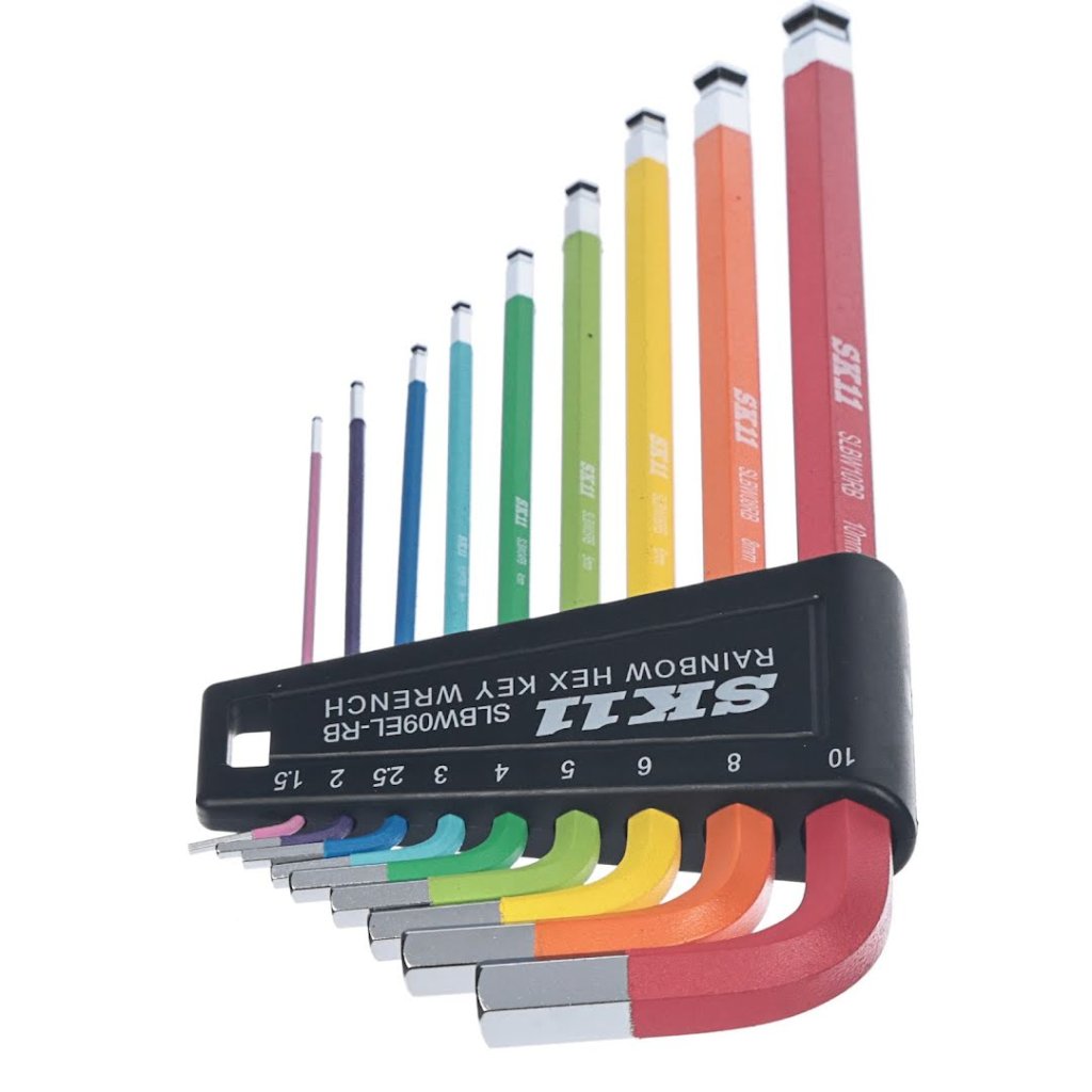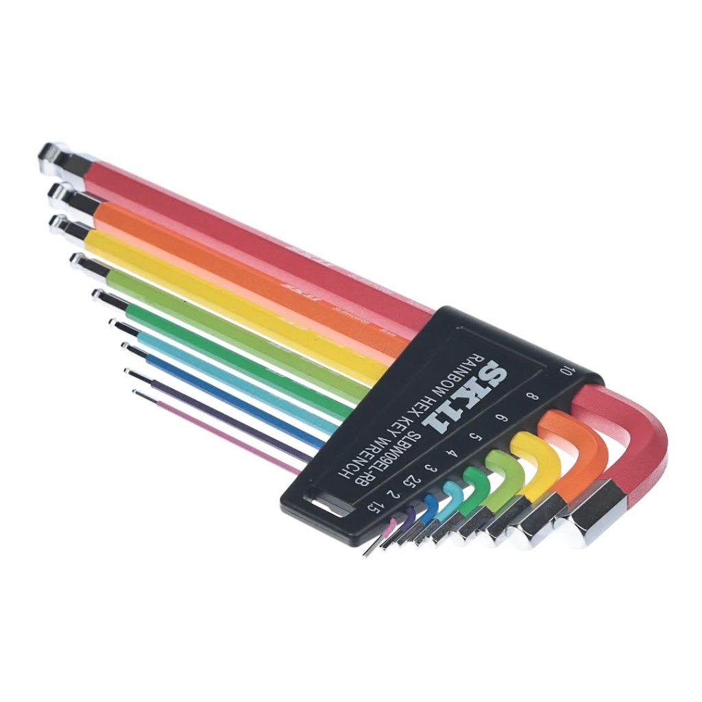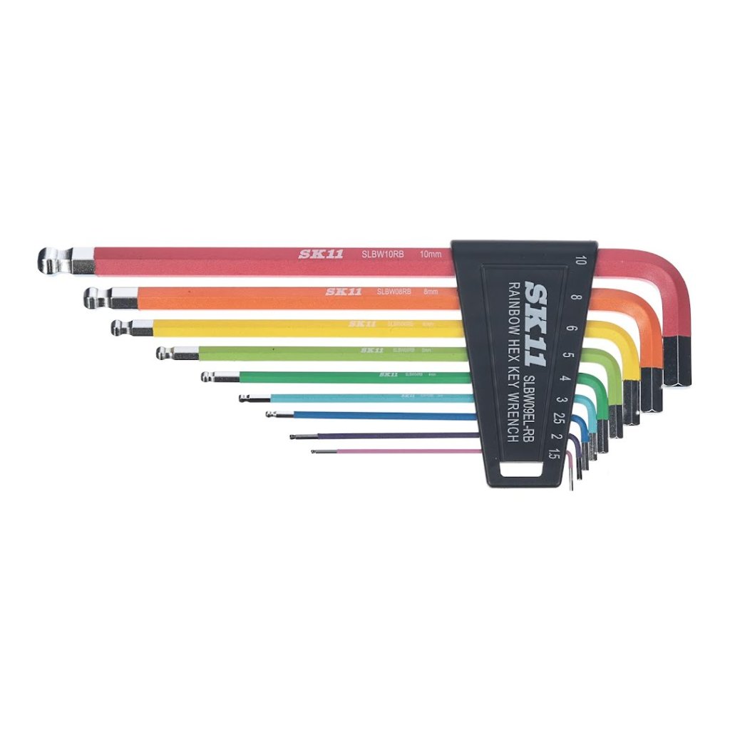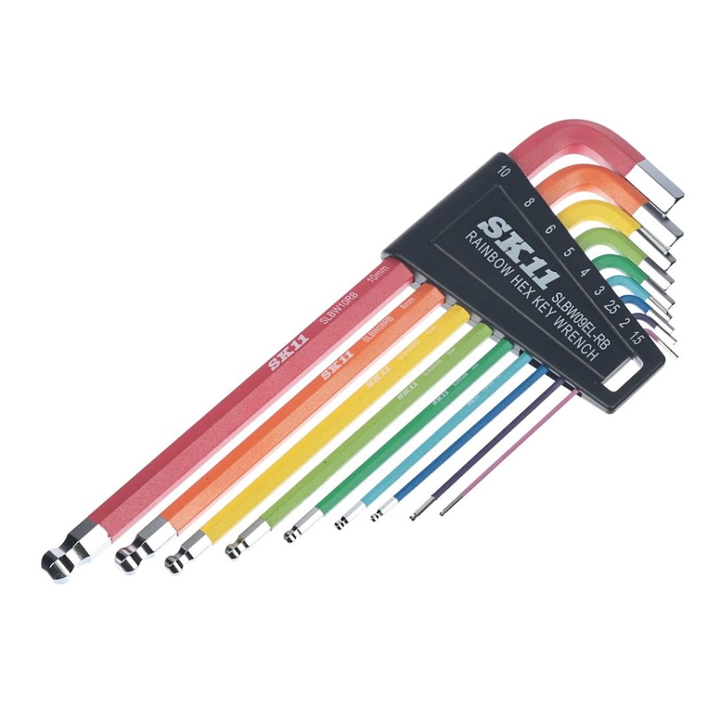 SK11 sada barevných imbusových klíčů s kuličkovým koncem je speciálně navržena pro snadné použití a všestrannost při dosažení šroubů a matic v nepřístupných úhlech, což umožňuje přístup pod úhlem až 25 stupňů. Tato sada obsahuje velikosti 1,5, 2, 2,5, 3, 4, 5, 6, 8 a 10 mm, což pokrývá širokou škálu aplikací od utahování po povolování šroubů a matic s vnitřním šestihranem. Dlouhý design zlepšuje páku a dosah v těsných prostorech. Sada je dodávána v barevném provedení a praktickém skládacím držáku, který usnadňuje přenášení, skladování a výběr potřebného klíče.