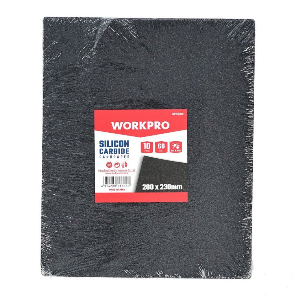 Sada brusných papírů WORKPRO pro ruční broušení dřeva, oceli, nátěrů a tmelů.
