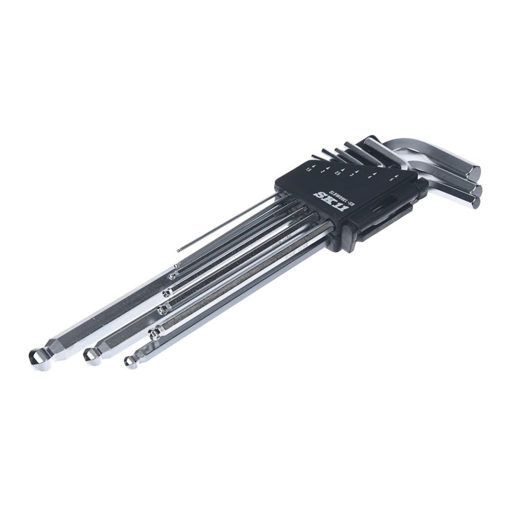 SK11 sada imbusových klíčů s kuličkovými konci, je navržena pro efektivitu a přístupnost při utahování a povolování šroubů s vnitřním šestihranem. Tato sada obsahuje 9 klíčů s kuličkovým koncem a držákem šroubů, který zajistí šroub před vypadnutím. Prodloužená délka každého klíče zvyšuje páku a dosah, zatímco kompaktní velikost zajišťuje snadné přenášení a skladování. Sada obsahuje velikosti od 1,5 mm až po 10 mm, a je uložena v praktickém pouzdru s vyklápěním pro rychlý přístup a organizaci.