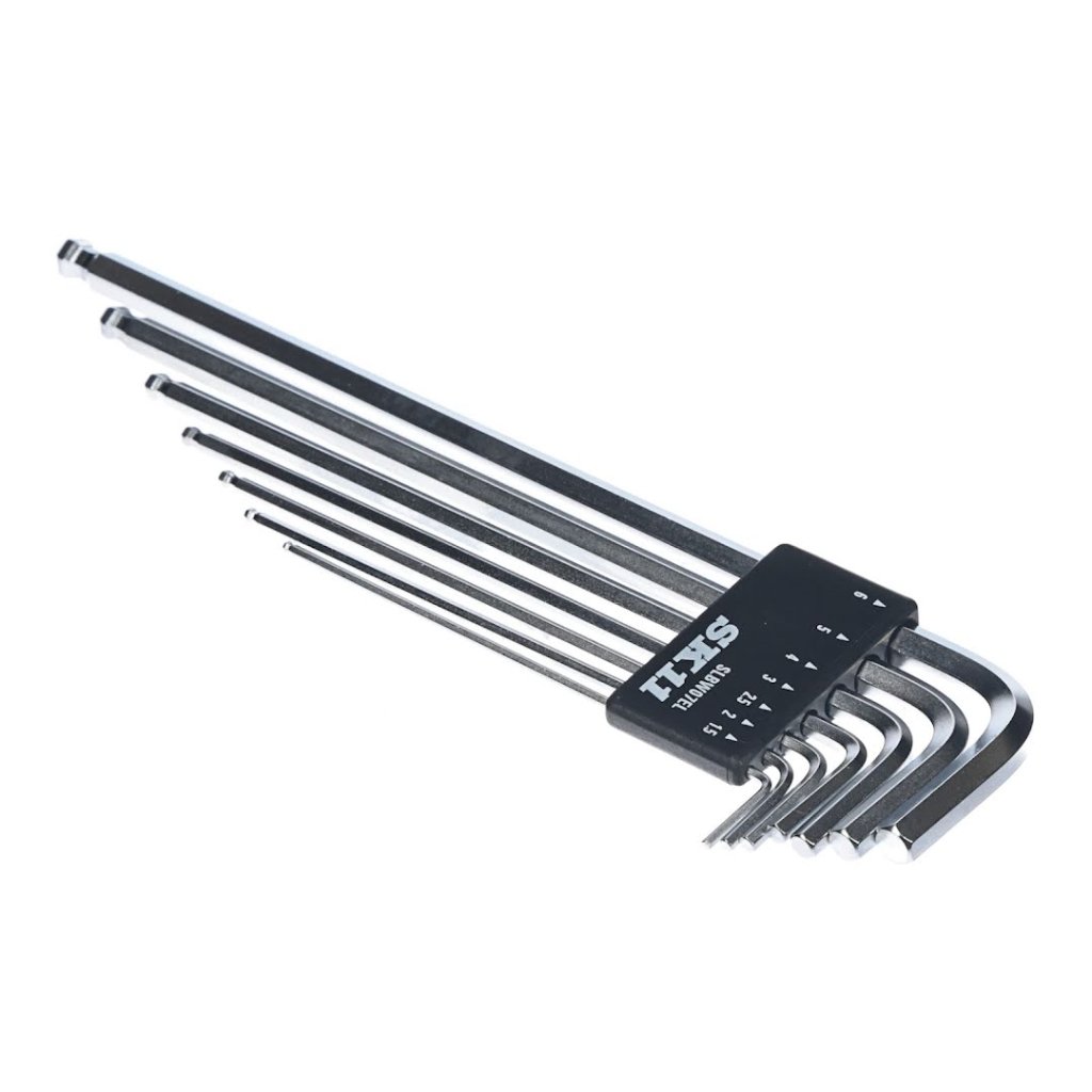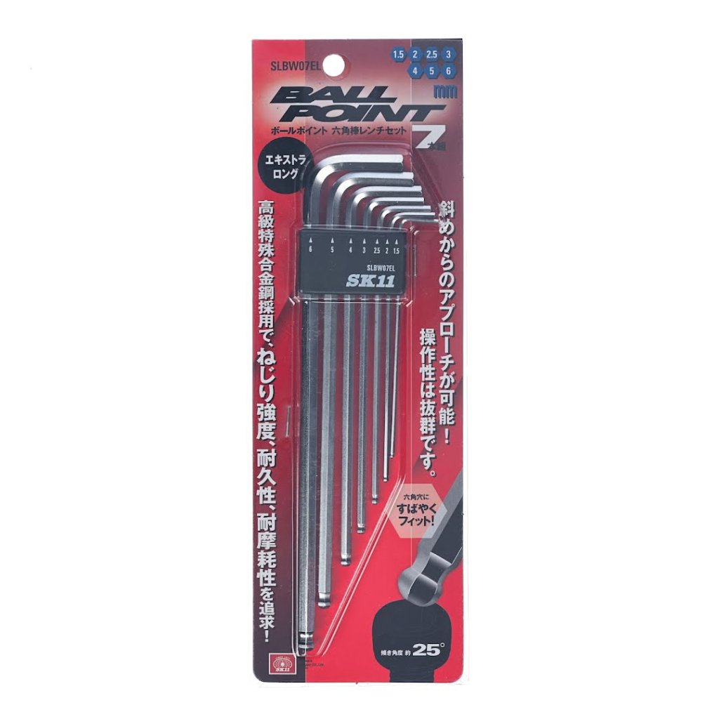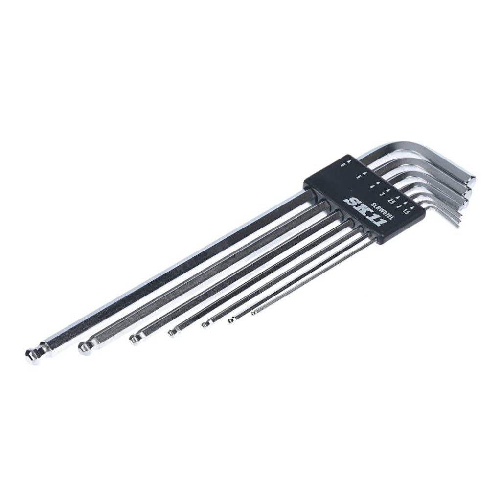 SK11 sada imbusových klíčů s kuličkovými konci, je navržena pro efektivitu a přístupnost při utahování a povolování šroubů s vnitřním šestihranem. Tato sada obsahuje 7 klíčů s kuličkovým koncem, který umožňuje pracovní úhel až 25 stupňů. Prodloužená délka každého klíče zvyšuje páku a dosah, zatímco kompaktní velikost zajišťuje snadné přenášení a skladování. Sada obsahuje velikosti od 1,5 mm až po 6 mm, a je uložena v praktickém pouzdru s vyklápěním pro rychlý přístup a organizaci.