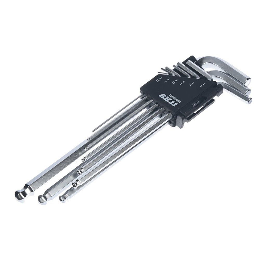 Sada SK11 s kulovým koncem je navržena pro přesnost a odolnost. Její kulový konec umožňuje působivý úhel náklonu až 35 stupňů, což usnadňuje přístup do úzkých prostor a zlepšuje celkovou manévrovatelnost. Klíče jsou vyrobeny z vysoce kvalitní speciální slitiny oceli s optimálním tepelným zpracováním, tato sada nabízí vysokou pevnost, houževnatost a odolnost. Sada obsahuje velikosti 1.5, 2, 2.5, 3, 4, 5, 6, 8 a 10 mm, což ji činí univerzální pro různé úkoly. Chromování přidává na estetice a poskytuje vynikající odolnost proti opotřebení a korozi.