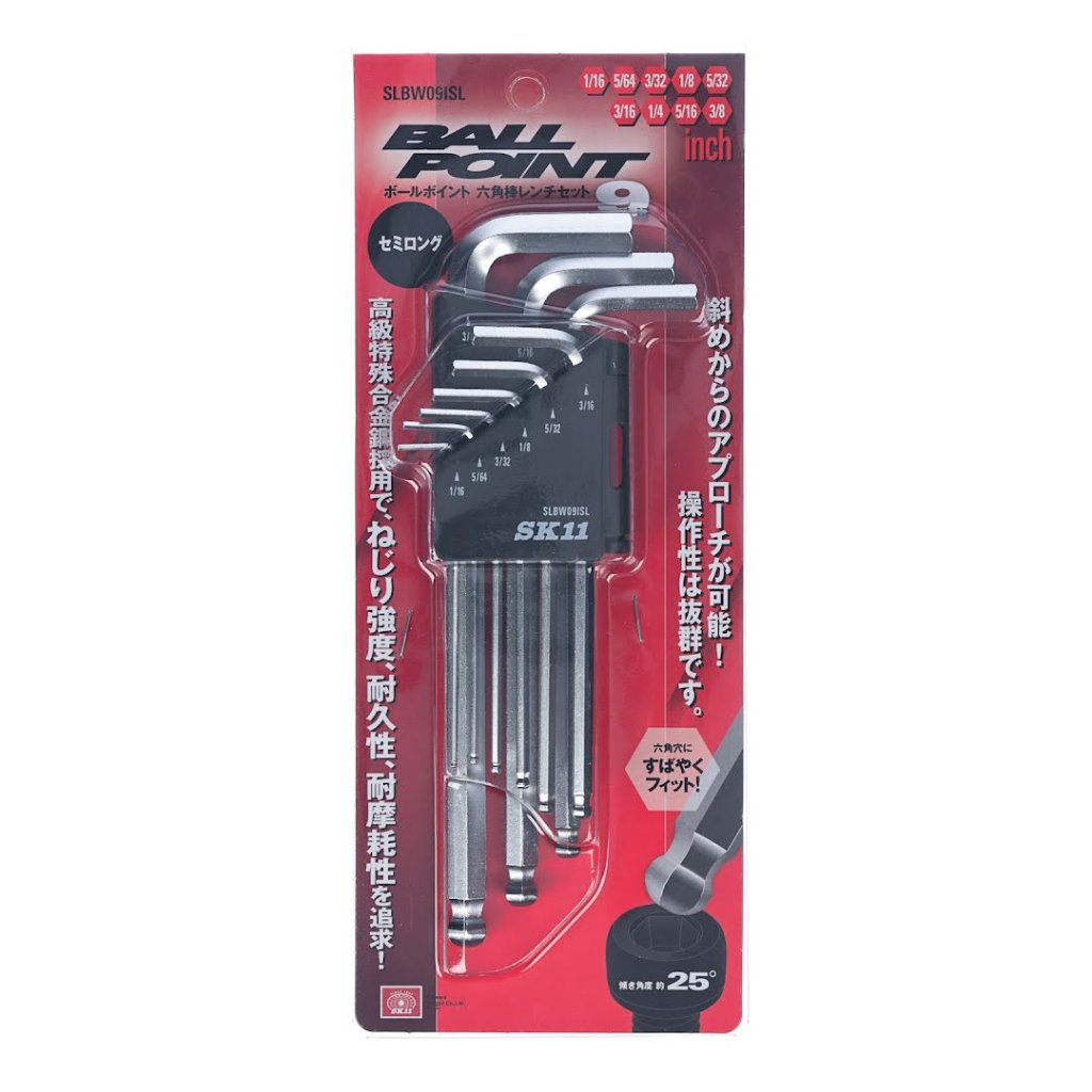 Sada imbusových klíčů SK11 s kuličkovým koncem je navržena pro vynikající manévrovatelnost, díky schopnosti přistupovat k imbusovým šroubům z úhlů. Tato sada obsahuje 9 klíčů ve velikostech: 1/16, 5/64, 3/32, 1/8, 5/32, 3/16, 1/4, 5/16 a 3/8 palce. Klíče jsou ideálních pro dosažení úzkých míst nebo kolem překážek. Vyrobena ze speciální ocelové slitiny s tvrdým chromovým povlakem, nabízí vysokou pevnost a odolnost proti korozi.