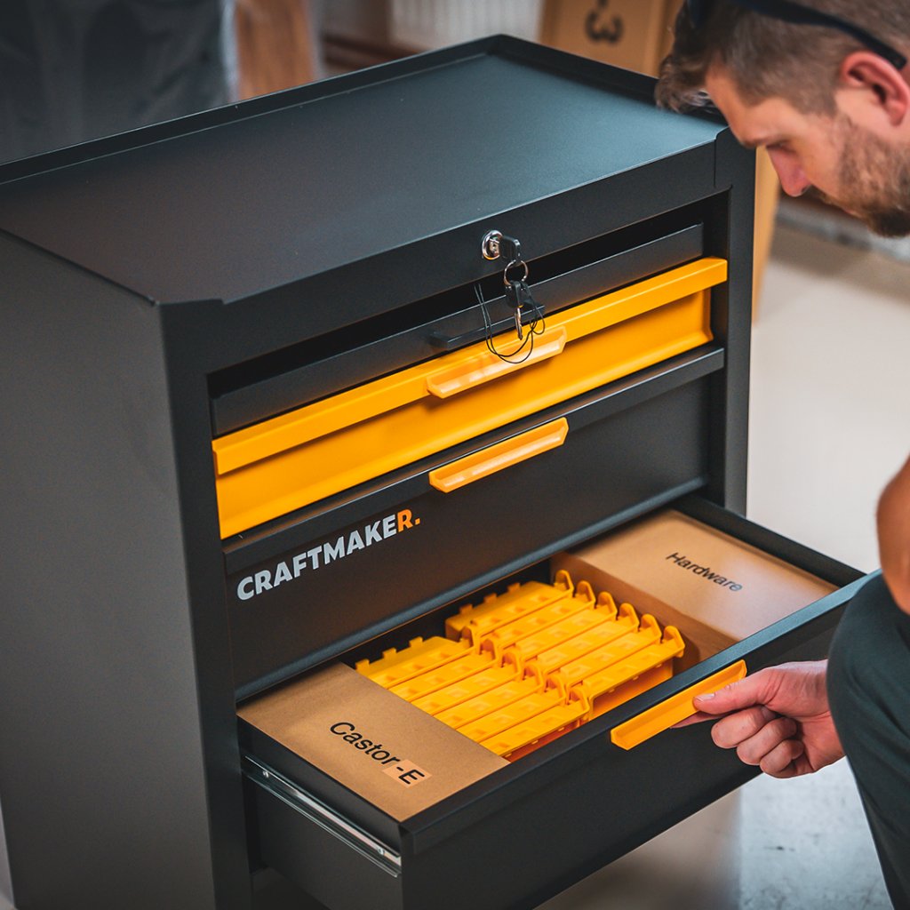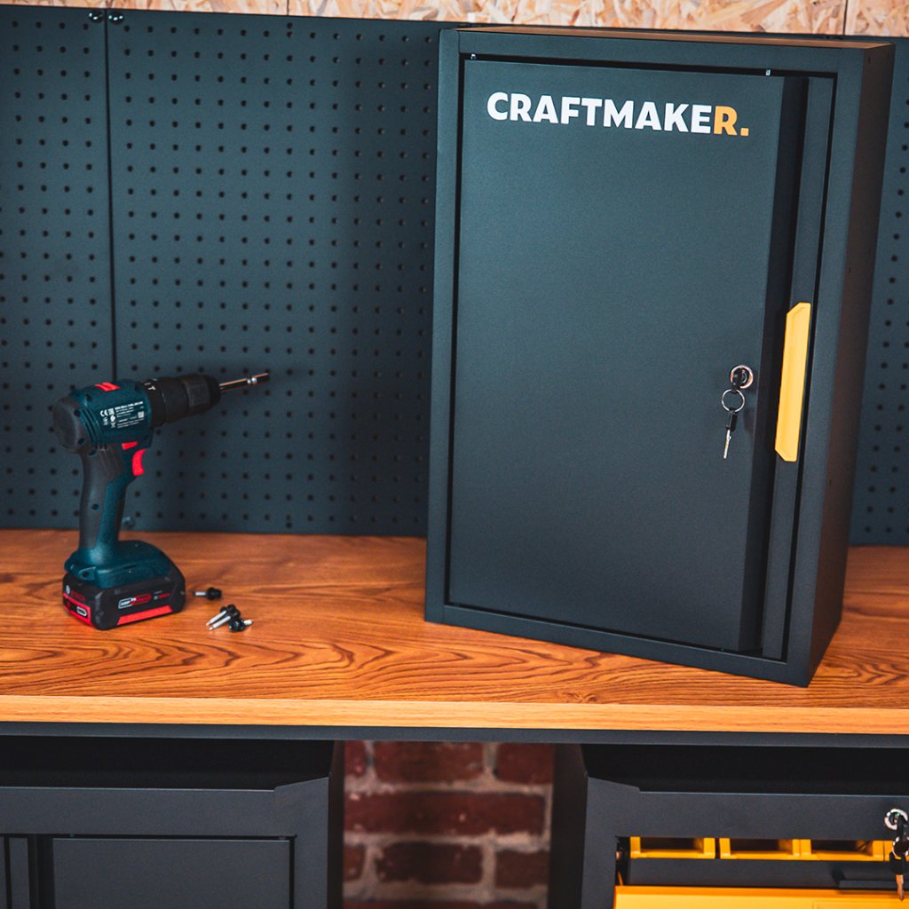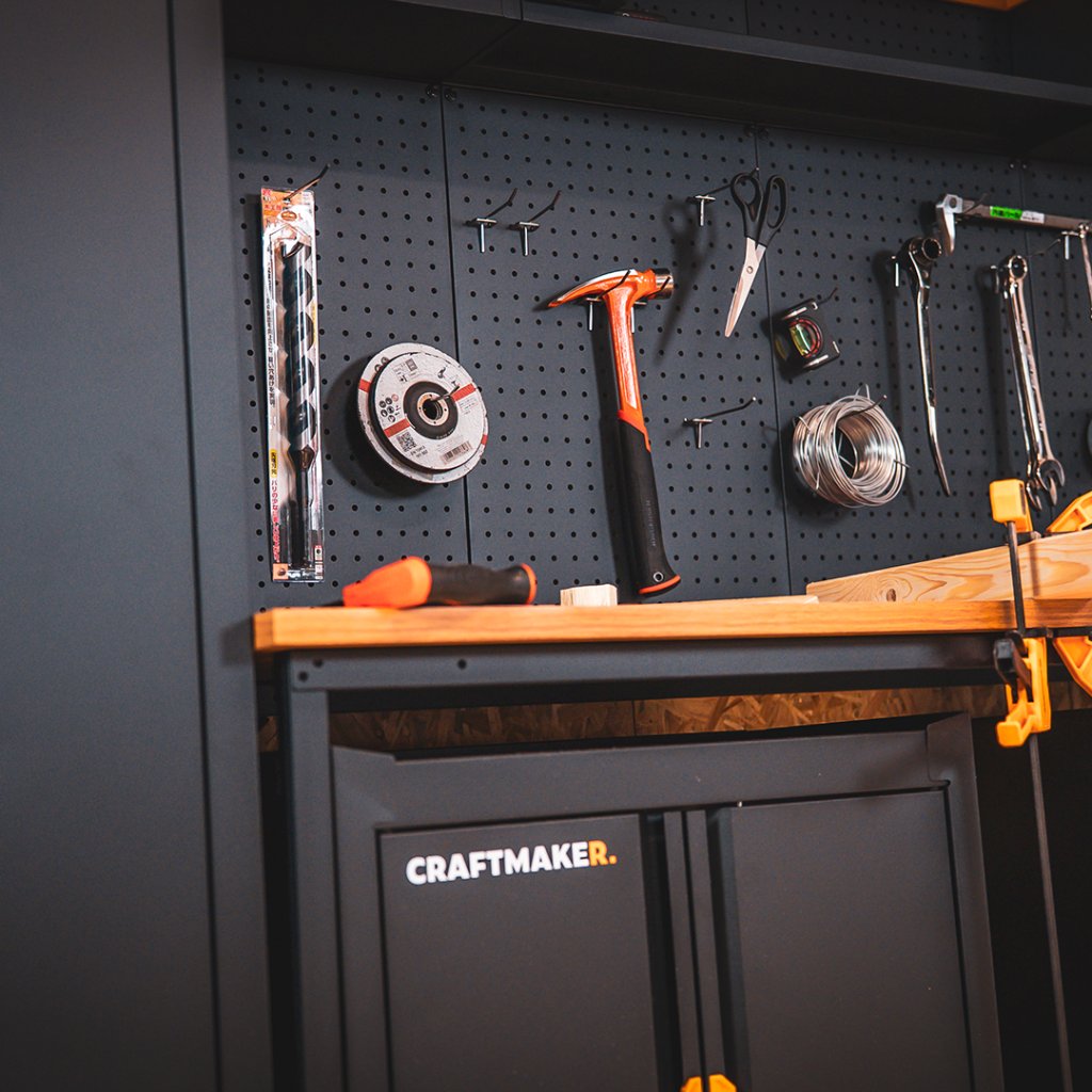CRAFTMAKER Storage & Workshop F60 je dílenská sestava nábytku pro řemeslníky – skříň se stolem, poličkami a stěnou do dílny představuje ideální kombinaci úložného prostoru a pracovní plochy, která usnadní organizaci a zefektivní práci v každé dílně. Robustní konstrukce z kvalitních materiálů zajišťuje dlouhou životnost a odolnost vůči náročným podmínkám při řemeslných pracích.