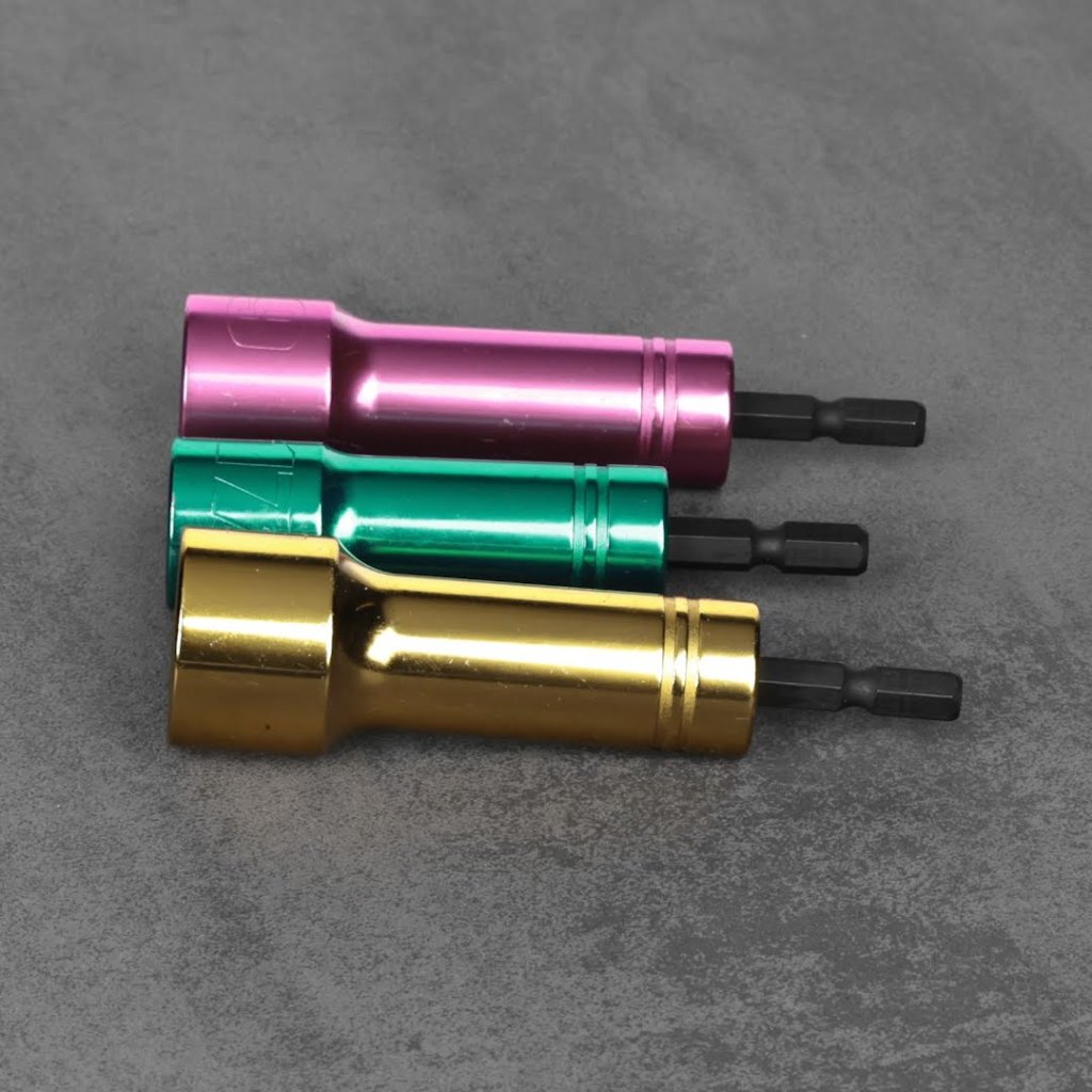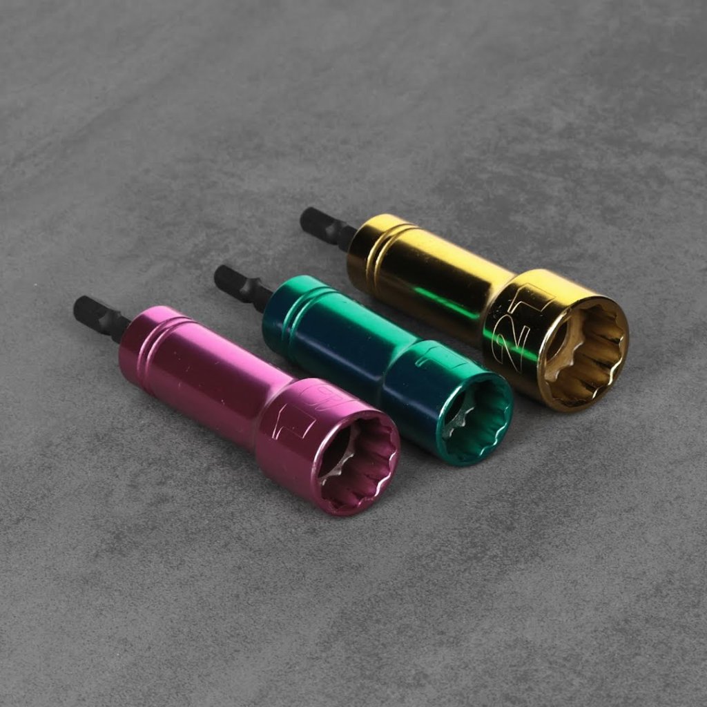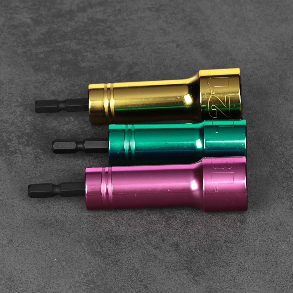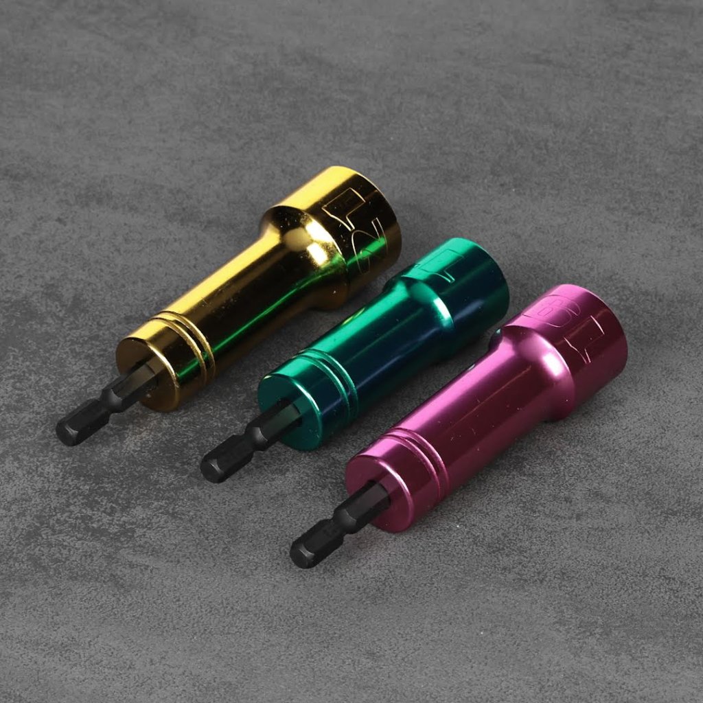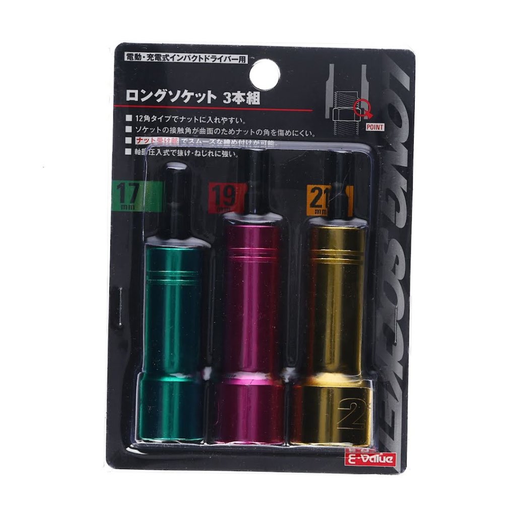 Sada nástrčných hlavic E-VALUE je navržena pro efektivní utahování a povolování šroubů a matic. Tato sada obsahuje tři nástrčné klíče ve velikostech 17 mm (zelená), 19 mm (červená) a 21 mm (žlutá), každý s 12hraným designem pro snadné zasunutí matice a zlepšenou manipulaci. Nástrčné klíče mají design s kulatými rohy pro minimalizaci poškození hran matice a jsou vybaveny lisovanou stopkou pro zvýšenou odolnost proti sklouznutí a kroucení. Pro zajištění bezpečného použití lze připojit volitelný adaptér proti pádu.