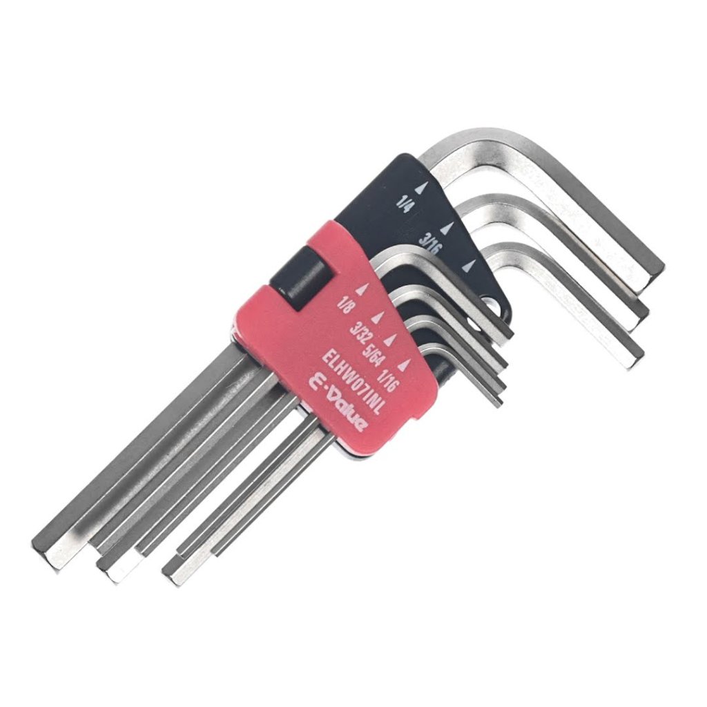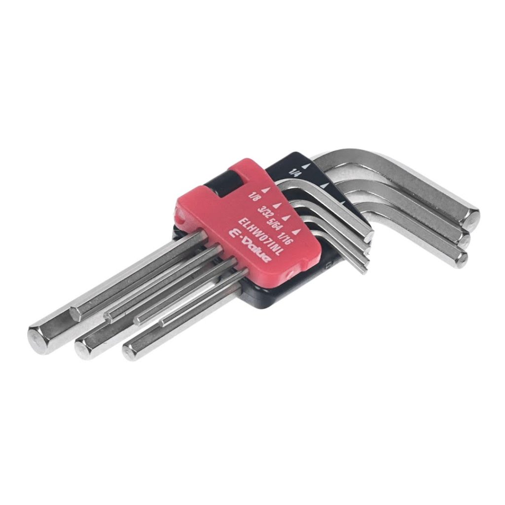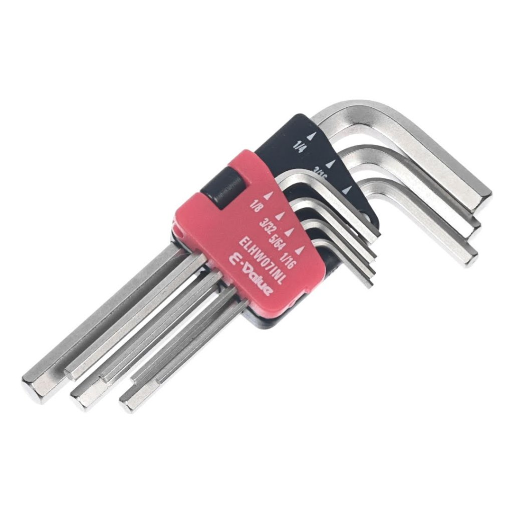 E-VALUE sada šestihranných klíčů ve tvaru L je standardní sada obsahující niklem potažené klíče, které jsou odolné proti korozi, což z ní činí vhodnou volbu pro jakoukoliv sadu nářadí. Tato sada má praktický rozkládací držák, který usnadňuje přenášení, skladování a přístup ke každému klíči. Sada je navržena pro utahování a povolování šroubů s šestihrannou hlavou, zahrnuje velikosti 1/16, 5/64, 3/32, 1/8, 5/32, 3/16 a 1/4 palce, což pokrývá širokou škálu potřeb.