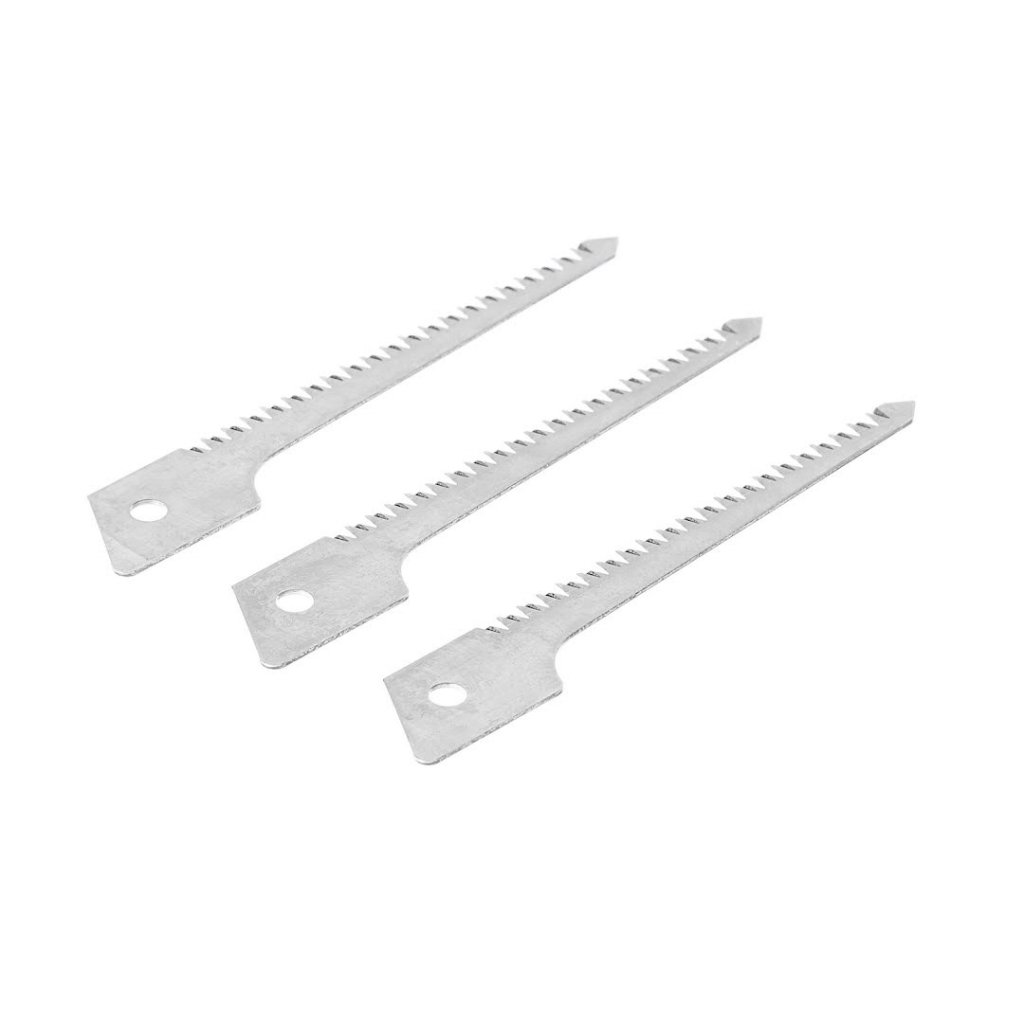 Sada náhradních čepelí DEVICE obsahuje tři precizně zpracované čepele navržené výhradně pro pilu DEVICE. Každá čepel měří 80 mm na délku a 0,9 mm na tloušťku a disponuje tvrzenými zuby a chemickým niklováním pro zvýšenou odolnost a odolnost proti korozi. Ideální pro detailní výřezy v sádrokartonu a podobných materiálech, tyto náhradní čepele zajišťují čisté a přesné řezy.