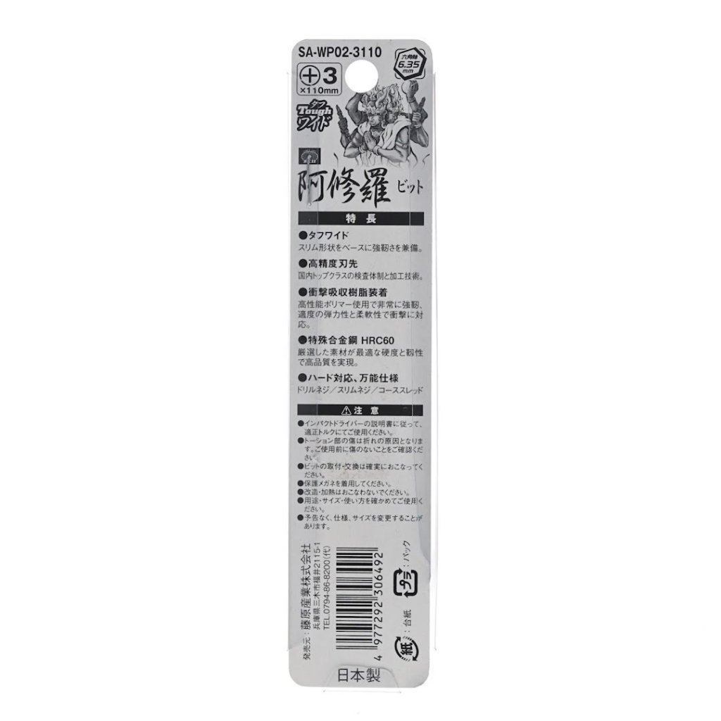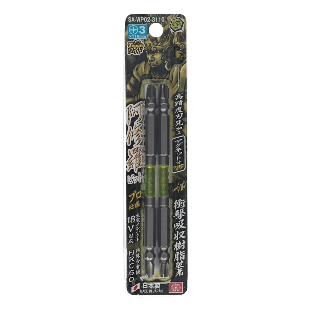 Sada šroubovacích bitů SK11, model SA-WP02-3110, je vysoce odolný a pevný nástroj vyrobený ze speciální oceli s vysokou tvrdostí, který obsahuje tlumicí pryskyřici pro zvýšení výkonu. Navržen pro použití s vrtačkami a rázovými utahováky, tento bit je ideální pro různé úkoly utahování šroubů. Jeho pokročilý design zahrnuje široký hrot Phillips č. 3 x 110 mm a praktický magnet. Specifikace bitu zajišťují vysokou přesnost a odolnost, což z něj činí vysoce kvalitní produkt vyrobený v Japonsku. Jeho výrazná zelená barva tuby vyniká jak ve funkčnosti, tak v designu.