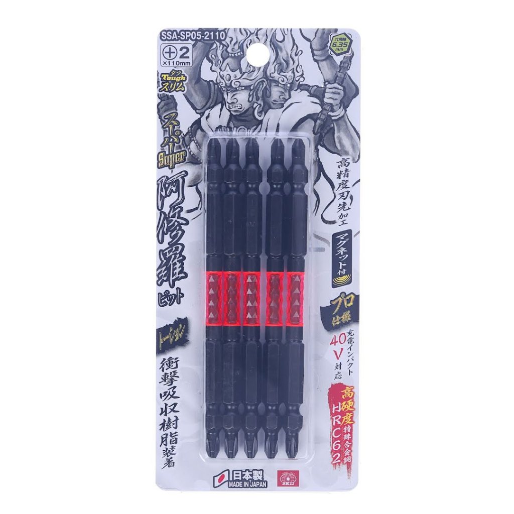 Sada japonských oboustranných šroubovacích bitů PH2 SK11 - 5 ks - HRC62 - 110 mm