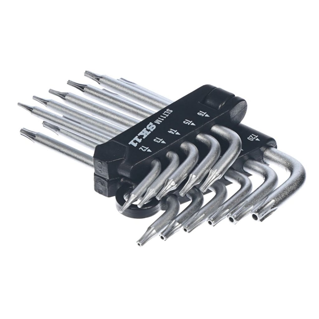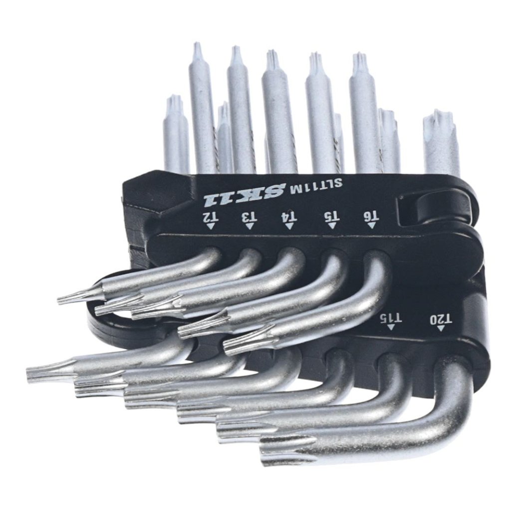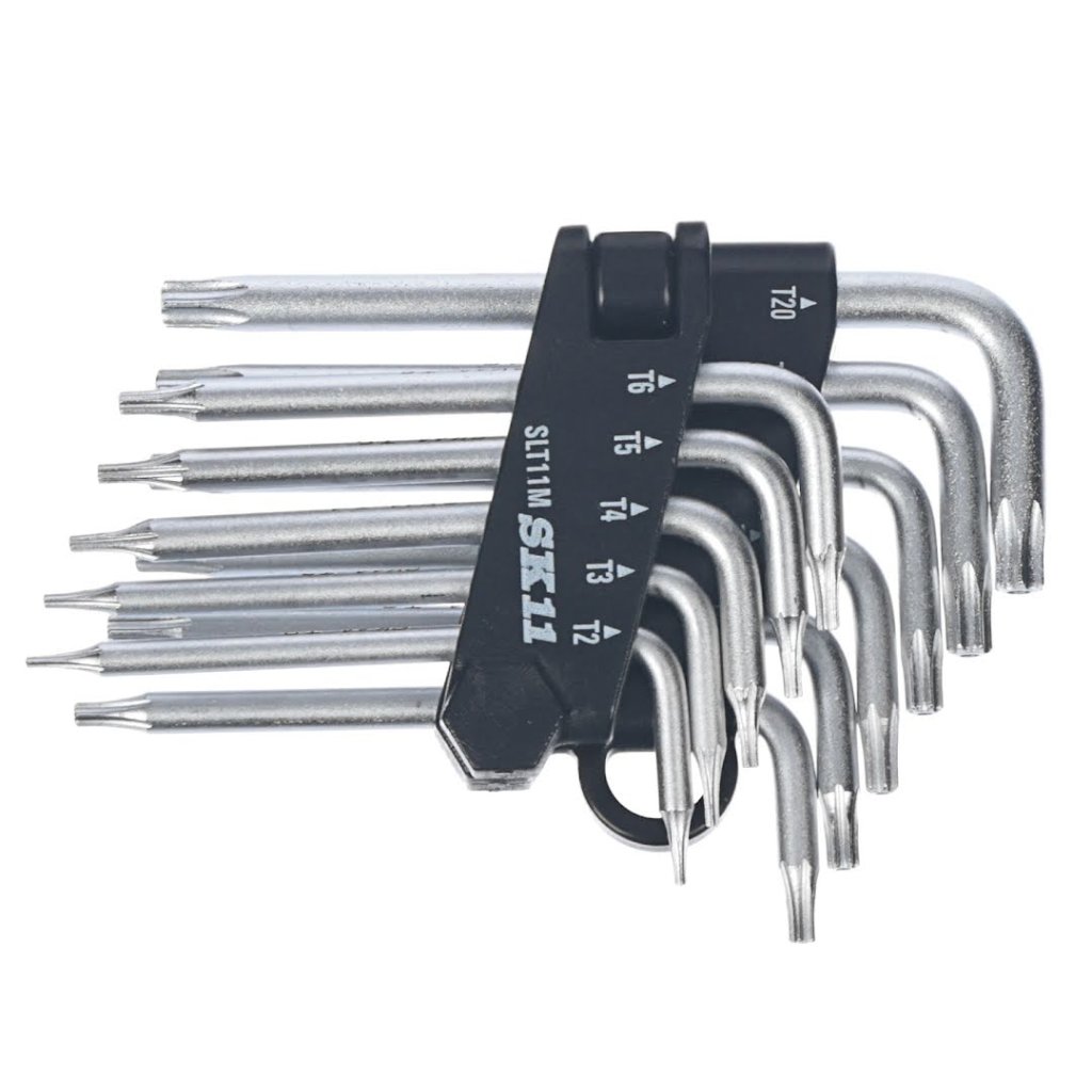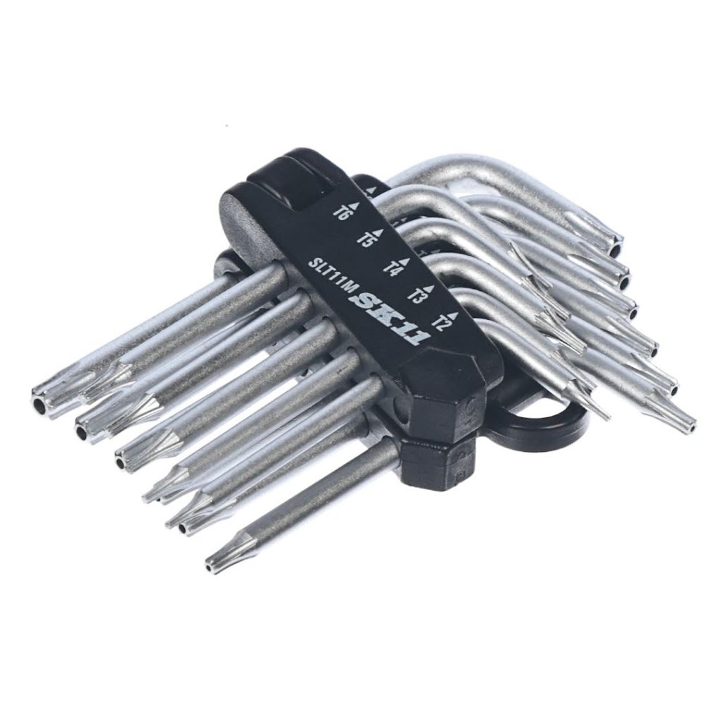 SK11 sada klíčů je specializovaná sada klíčů ve tvaru L navržená pro mikro tvarované Torx šrouby. Perfektní pro aplikace zahrnující utahování i povolování, tato sada obsahuje 11 dílů přizpůsobených pro Torx šrouby. Každý klíč od velikosti T7 výše má hrot s otvorem pro bezpečnostní hvězdicové šrouby, což zvyšuje všestrannost a funkčnost nástroje. Klíče jsou vhodné pro práci s elektronikou.