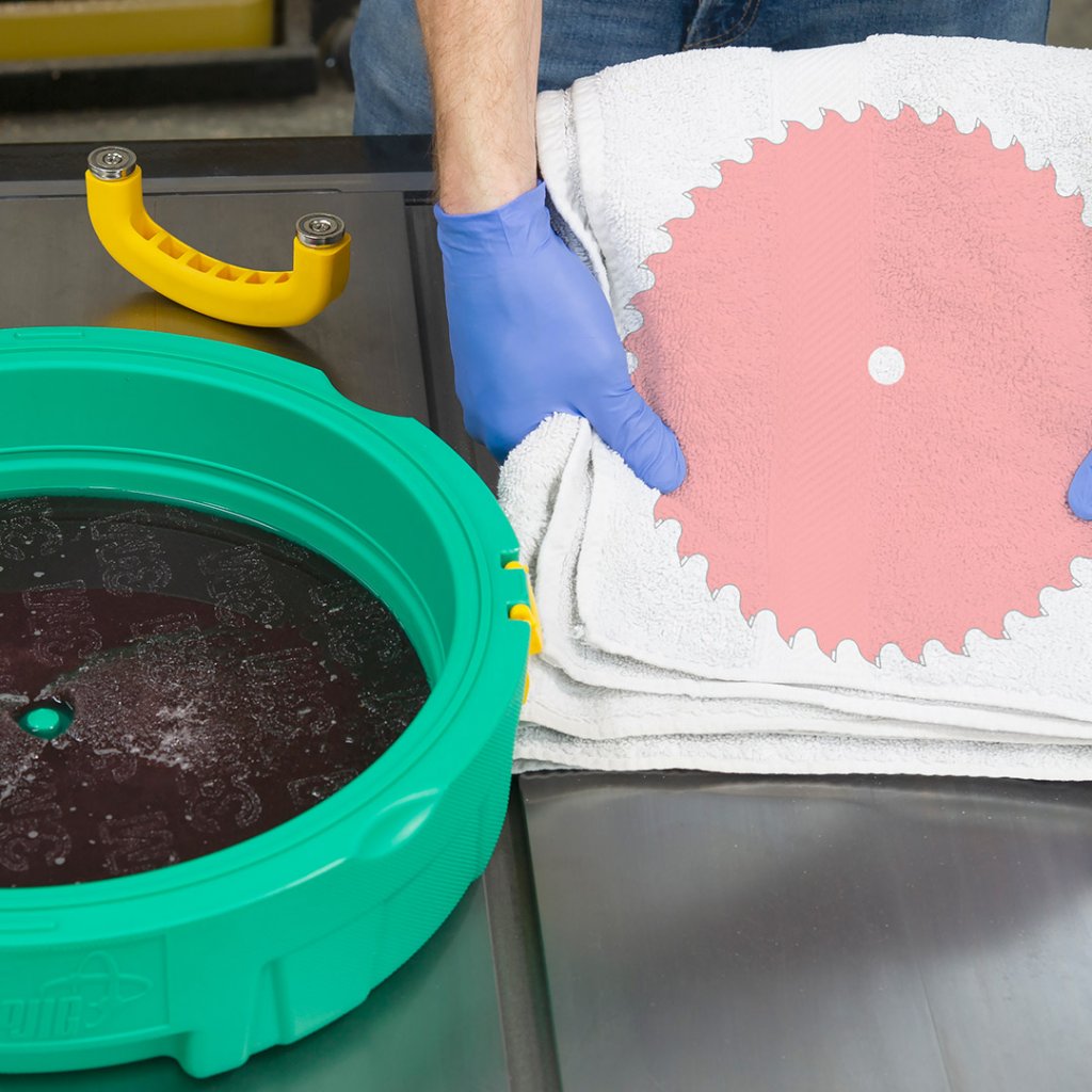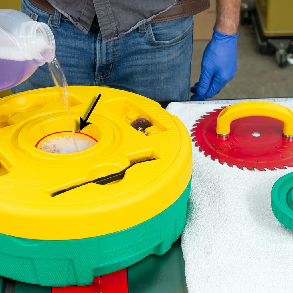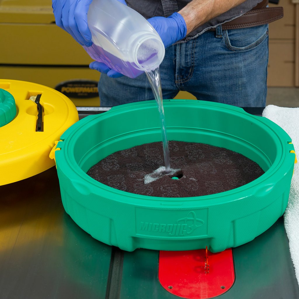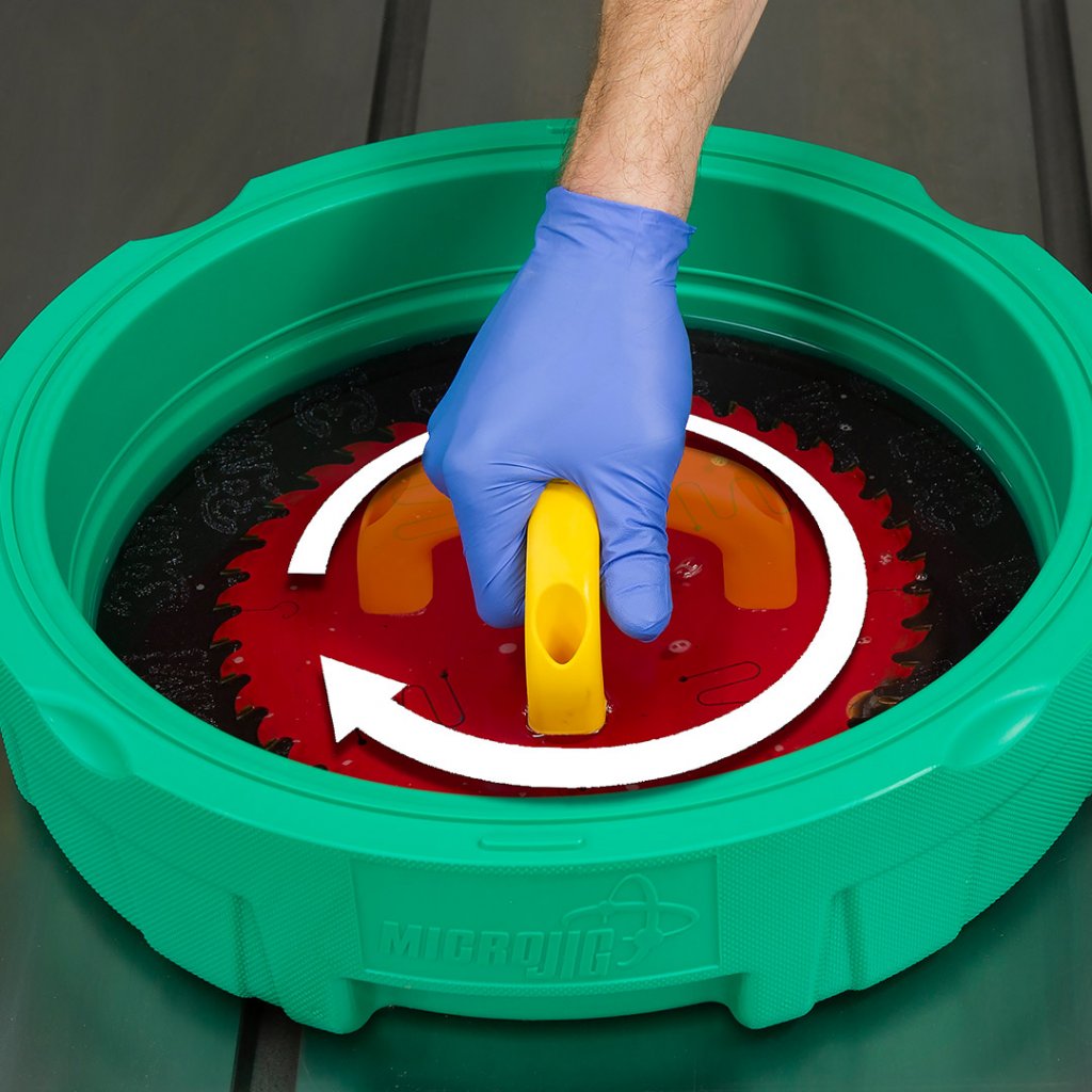 Velká sada pro čištění pilových kotoučů a bitů BLADECLEAN je nejrychlejší, nejbezpečnější a nejpříjemnější způsob čištění pilových kotoučů a frézovacích bitů. Špinavý pilový kotouč či bity zatěžují pilu či frézu, vytvářejí více tepla a často jsou mylně považovány za tupé. Vyhněte se broušení, když to není potřeba a pořádně je vyčistěte s čistícími podložkami z oxidu hlinitého.