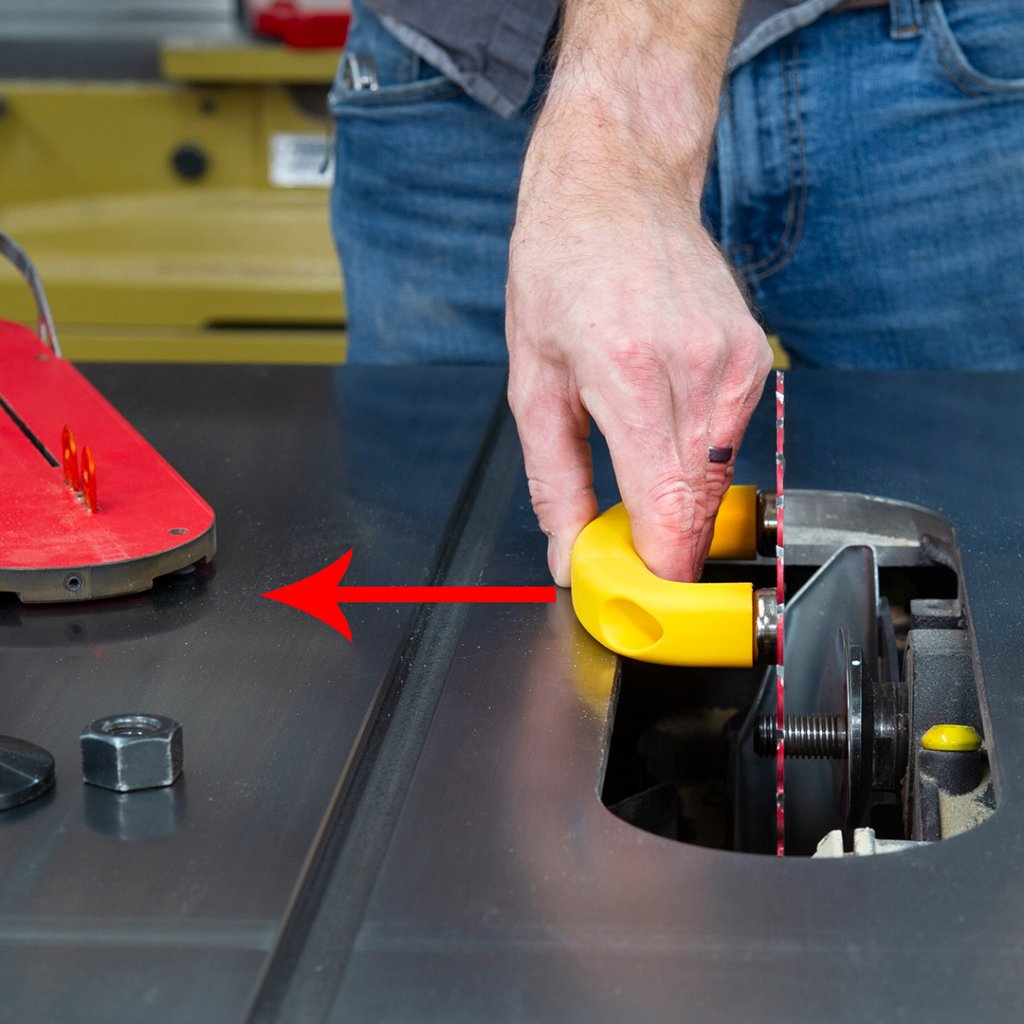 Magnetická rukojeť se připevní k pilovému kotouči, takže vaše pokožka nepřijde do styku s drsnými chemikáliemi nebo ostrými řeznými hranami.