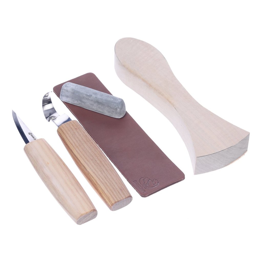 Sada pro začínající řezbáře k vytvoření lžíce s keltským motivem od značky BEAVERCRAFT. Sadu jistě ocení každý kutil nebo kreativec, který chce vyrobit dárek vlastníma rukama. Keltský starter pack obsahuje všechno co začínající řezbář potřebuje. Součástí balení jsou 2 řezbářské nože z uhlíkové oceli a kvalitního jasanového dřeva, obtahovací kožený řemínek, leštící směs a další. Díky průvodci krok za krokem si dokáže lžíci vyrobit opravdu každý.
