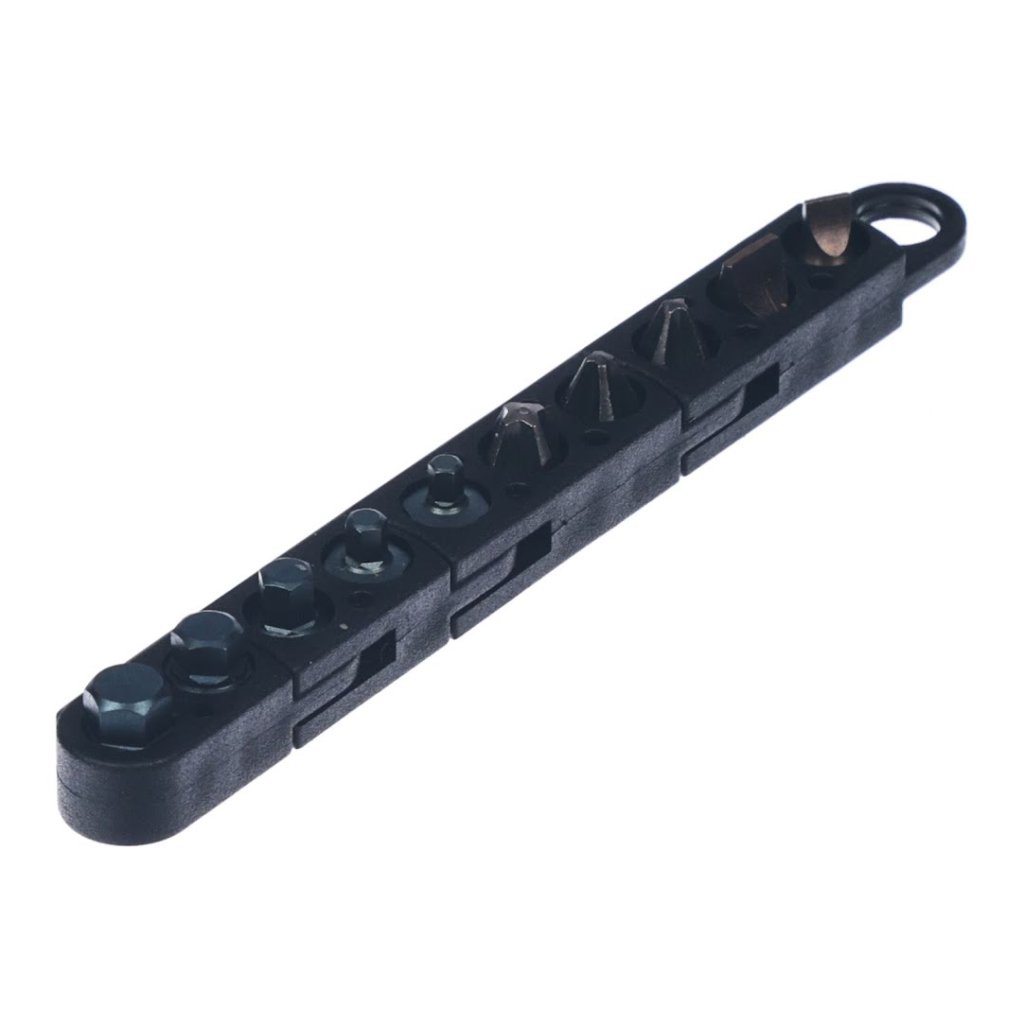 Sada bitů do krátké ráčny SK11 je univerzální sada bitů navržená pro utahování a povolování šroubů. Tato 10 dílná sada obsahuje různé velikosti: PH1, PH2, PH3, SL4, SL6, H2.5, H3, H4, H5 a H6, což ji činí velmi univerzální pro různé úkoly. Každý bit je 12 mm dlouhý.