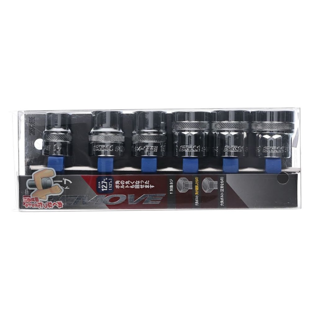 Sada nástrčných hlavic na odstranění šroubů SK11, model SHS406RE, je nezbytná pro každého, kdo se potýká s problematickými nebo zaoblenými šrouby. Tato specializovaná sada nástrčných hlavic je navržena pro efektivní utahování a povolování. Obsahuje velikosti od 14 mm do 24 mm s 12,7 mm čtvercovým pohonem pro všestranné použití. Díky snadnému ovládání lze nástrčné hlavice bezpečně připojit a snadno odpojit z držáku jedním dotykem.