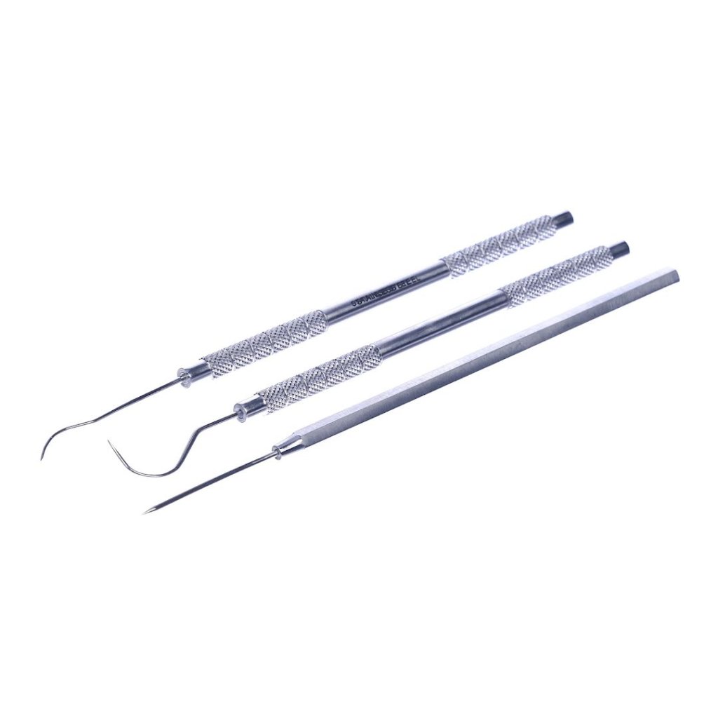 Sada přesných háčků SK11, je 3-dílná sada navržená pro jemnou detailní práci v sochařství, modelování z hlíny a řemeslné práce. Každý nástroj je vyroben z odolné nerezové oceli, která odolává korozi a zajišťuje dlouhou životnost. Sada obsahuje tři typy nástrojů, které vyhovují různým úkolům, od uměleckých děl po projekty v oblasti dřevozpracování a kovoobrábění.