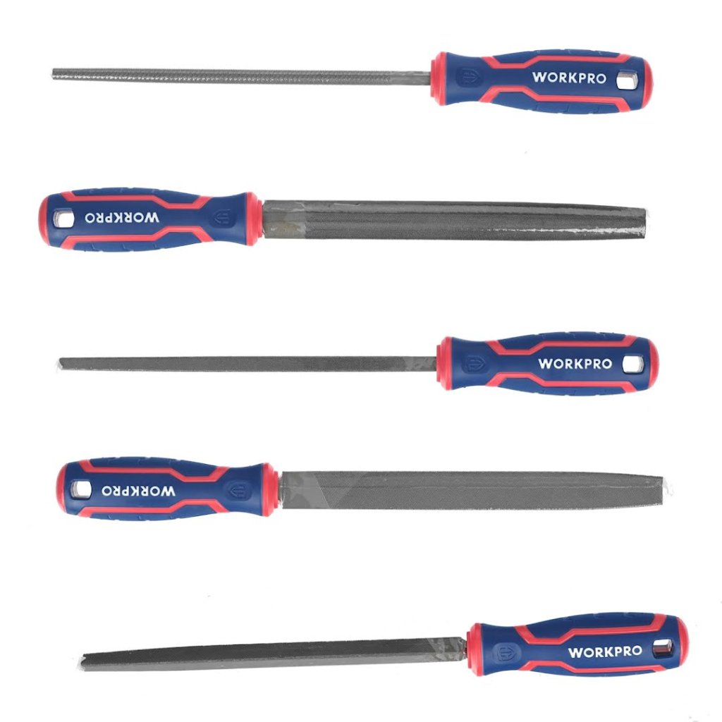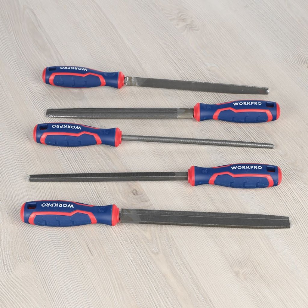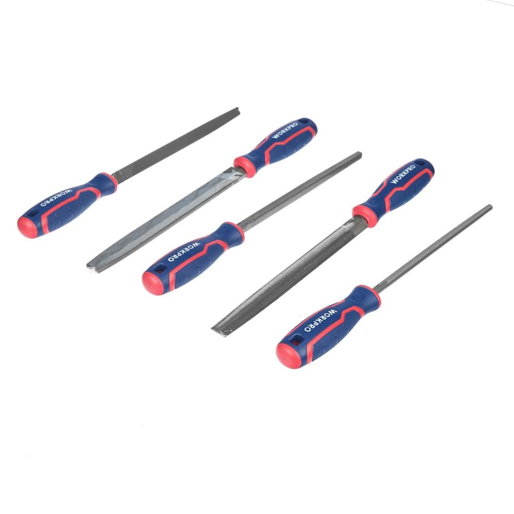 Sada pilníků WORKPRO pro pilování a opracování kovu. 5 pilníků v sadě. Vhodné pro domácí i profesionální využití.