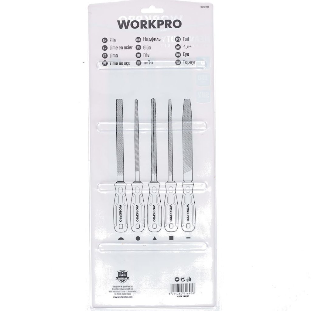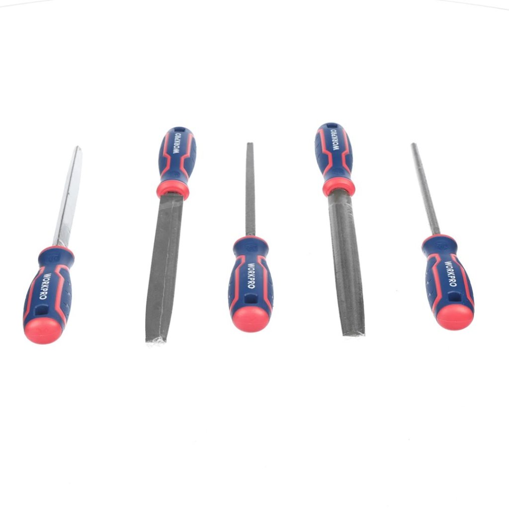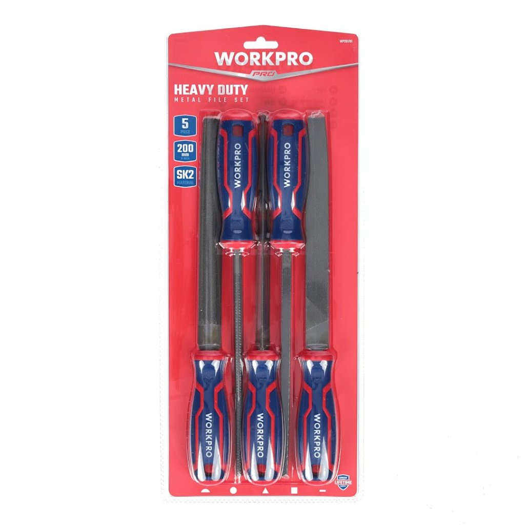 Sada pilníků WORKPRO pro pilování a opracování kovu. 5 pilníků v sadě. Vhodné pro domácí i profesionální využití.