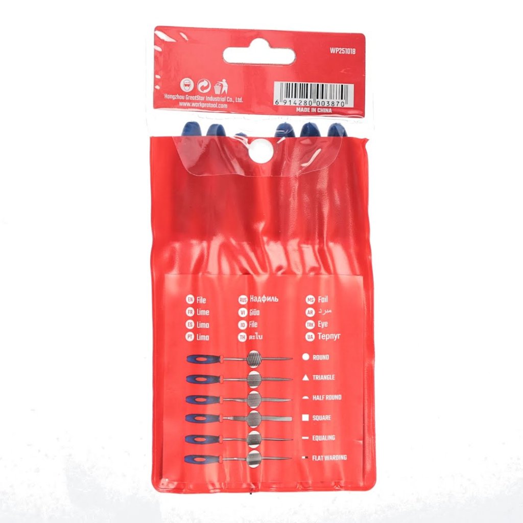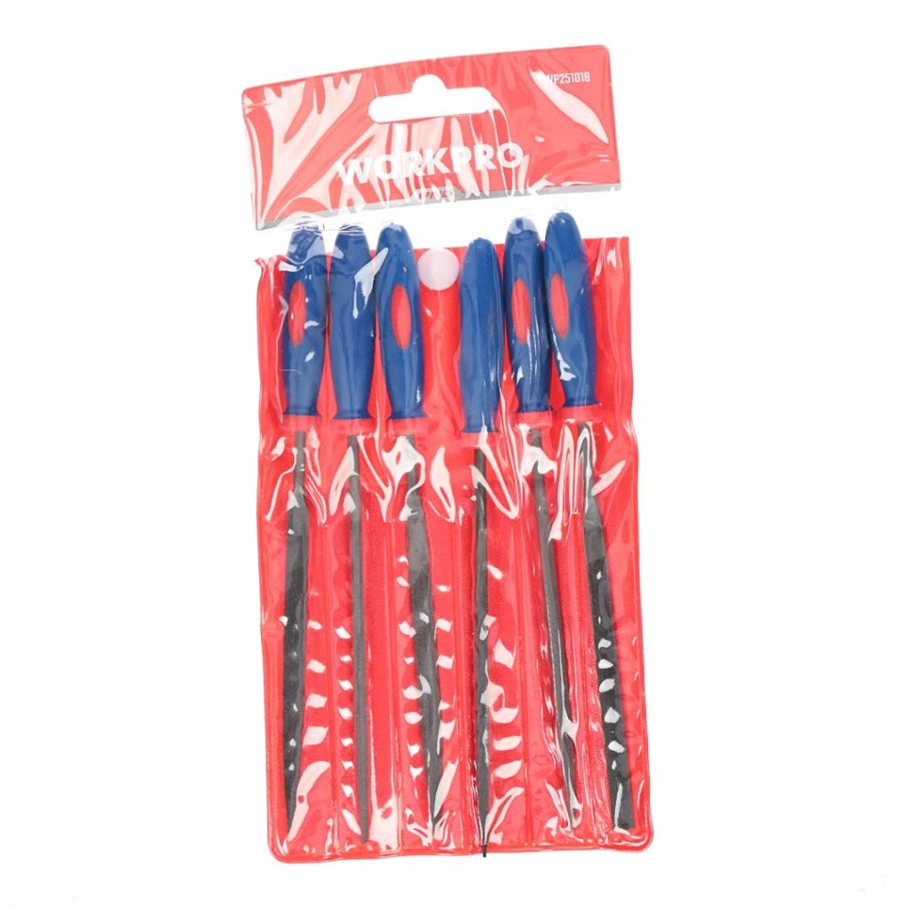 Sada jemných pilníků WORKPRO pro pilování a opracování kovu. 6 pilníků v sadě. Vhodné pro domácí i profesionální využití.