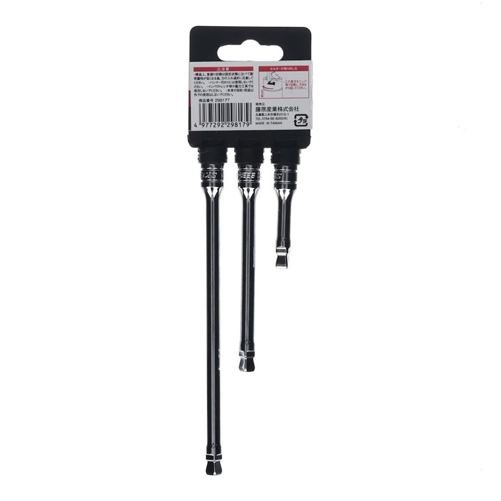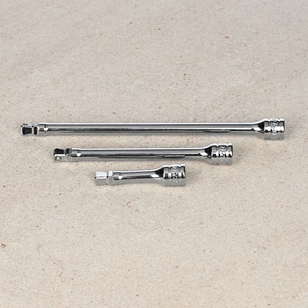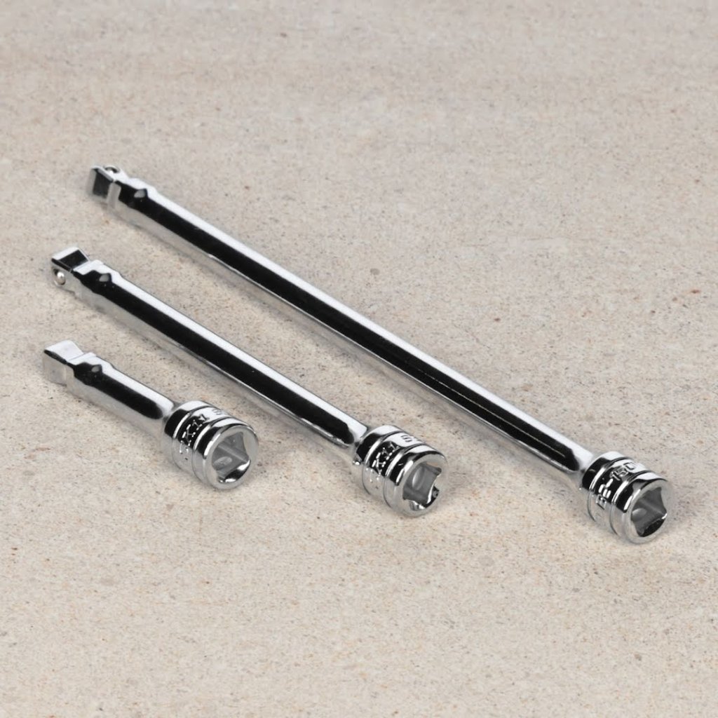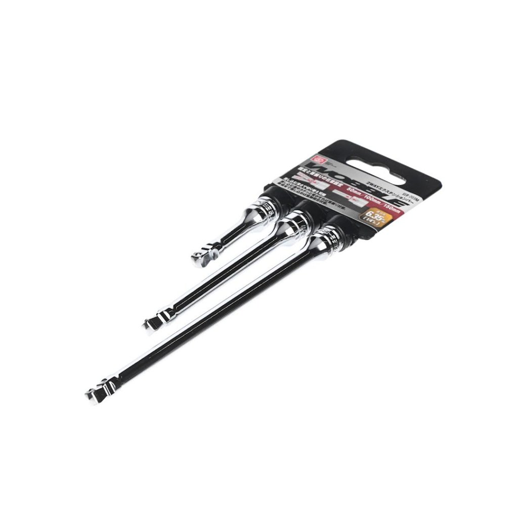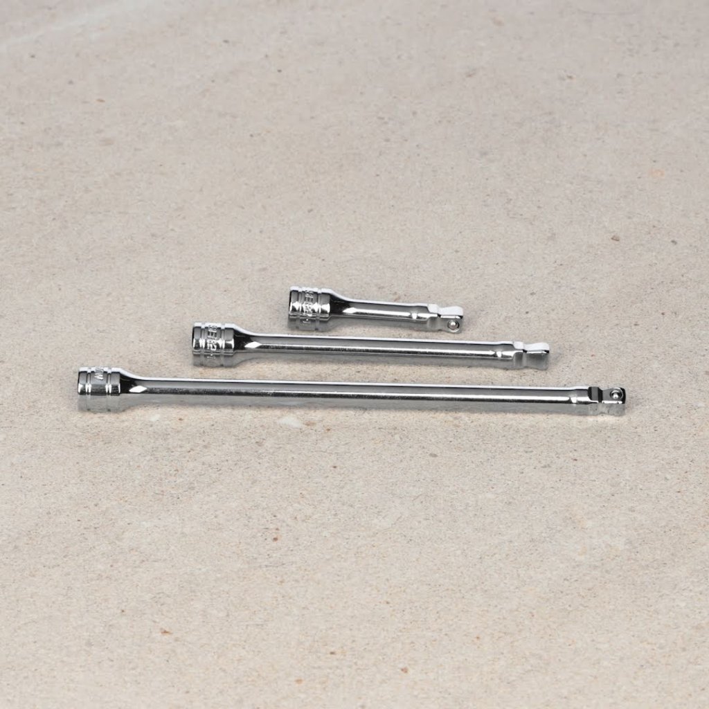 Sada prodlužovacích adaptérů SK11, model SEB-203M, je univerzální sada nástrojů navržená k zajištění dosahu v úzkých a hlubokých oblastech. Prodlužovací tyče lze nastavit do otočných a pevných poloh, což nabízí flexibilitu s úhlem otáčení 10 stupňů. Mají 6,35 mm (1/4 palce) pohon a jsou ideální pro různé aplikace s nástrčnými klíči. Tyče se pyšní pochromovaným zrcadlovým povrchem, který zajišťuje odolnost a elegantní vzhled. Obsahuje adaptéry o délkách 50 mm, 100 mm a 150 mm.