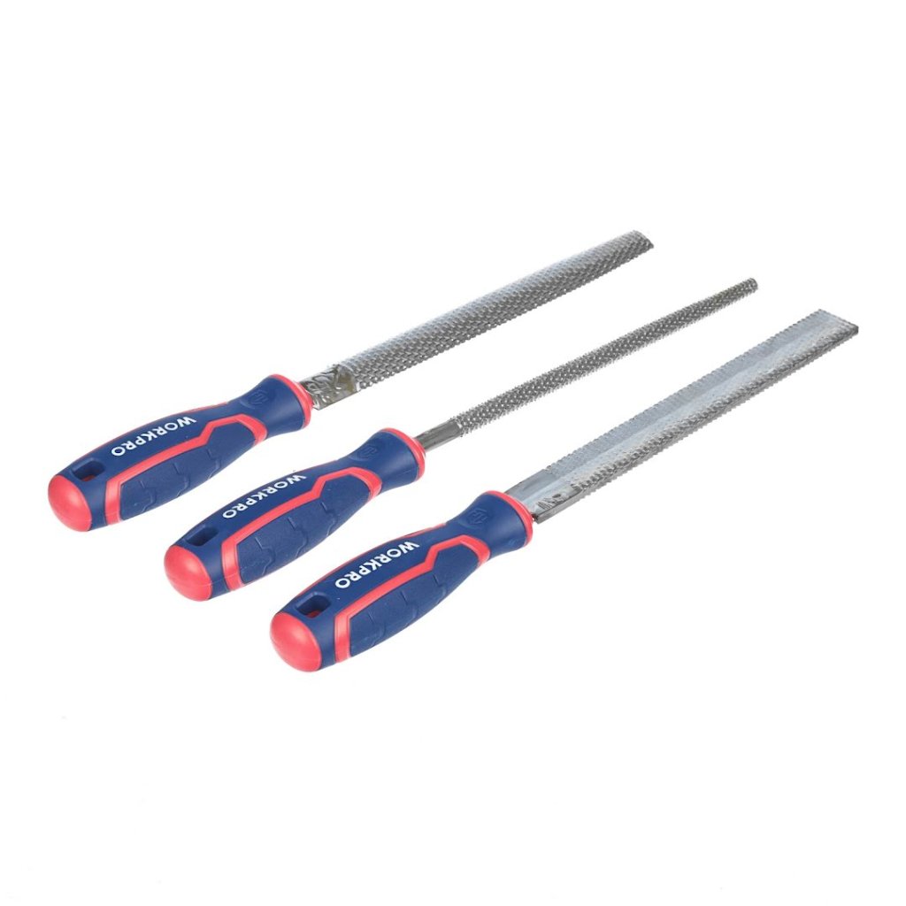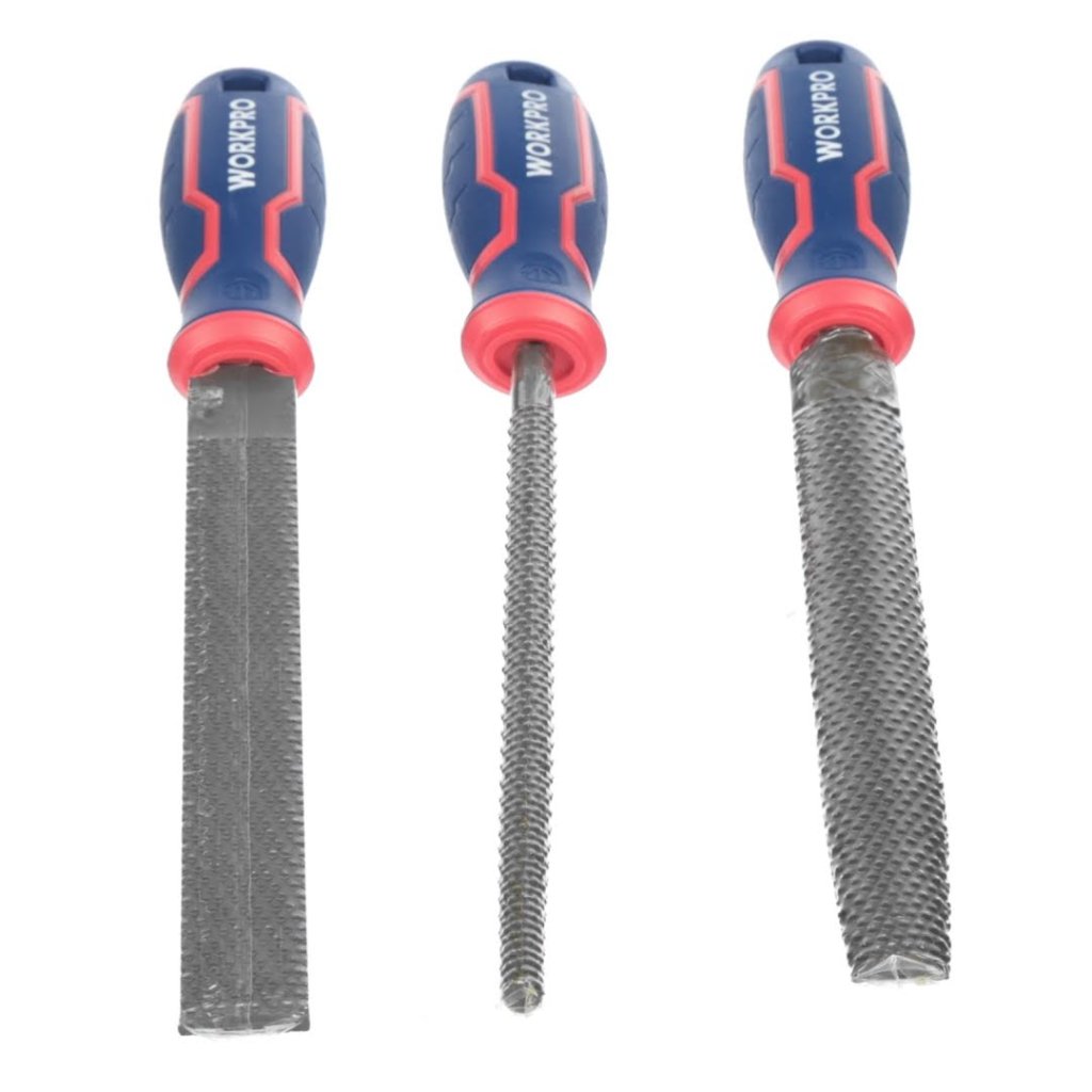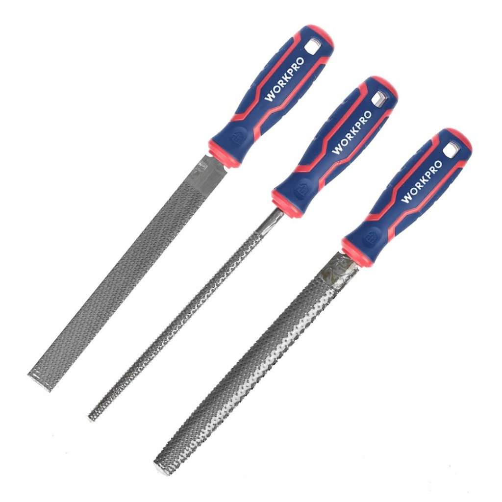 Rašple WORKPRO na opracování dřeva. 3 pilníky v sadě s různými profily. Vhodné pro profesionální i domácí využití.