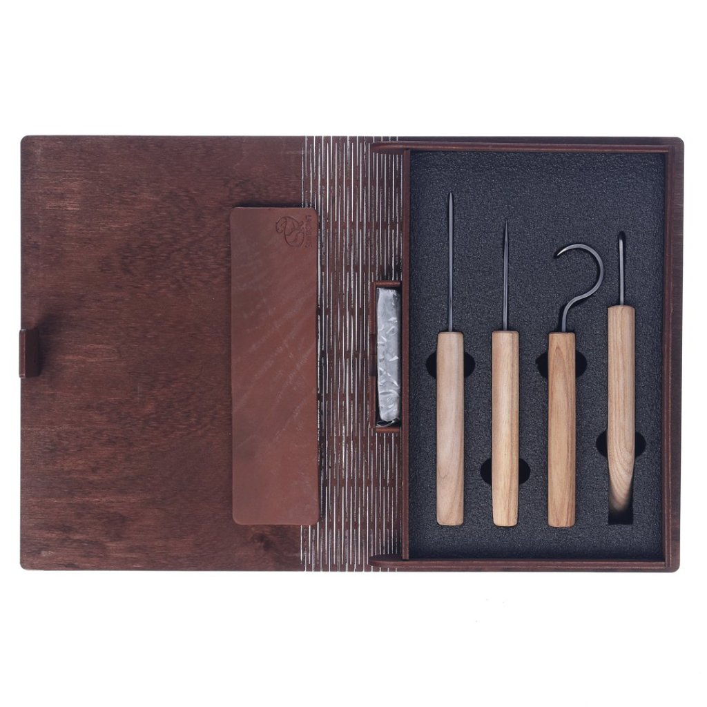 Sada řezbářských nožů v dřevěné knize BEAVERCRAFT - 4 kusy