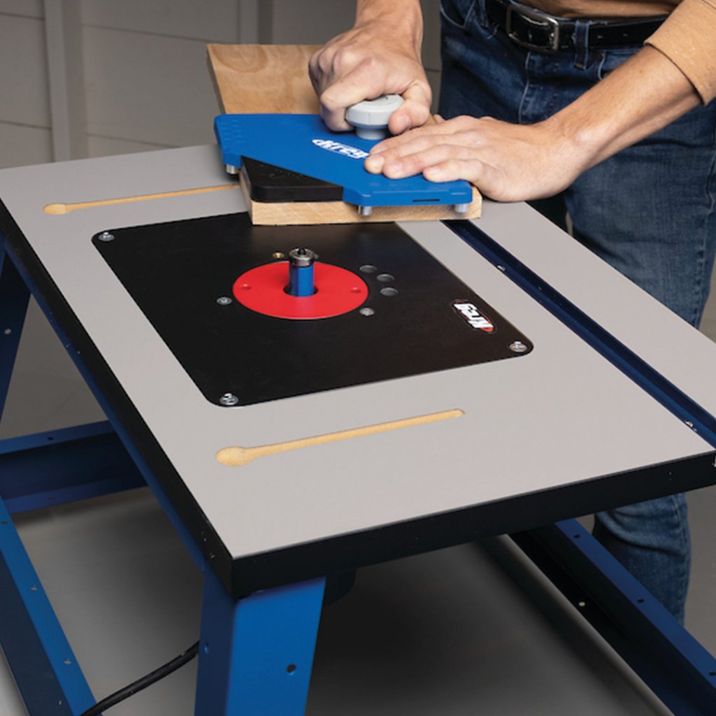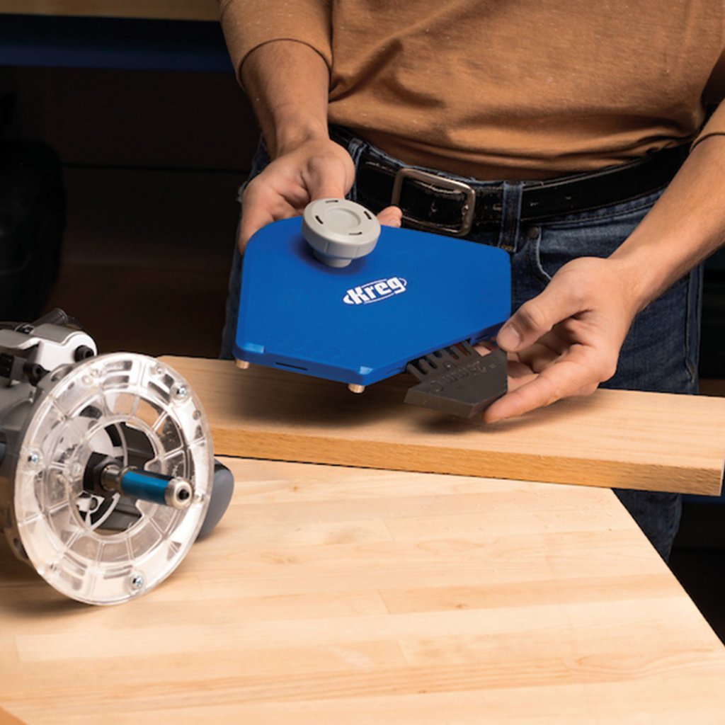 Vytvoříte dokonalé rohové profily s jakoukoli frézkou pomocí sady vodítek KREG® pro rohové frézování. Ozdobné rohy vytvoříte ve třech jednoduchých krocích. Nejprve připojte požadovaný profil. Dále vyfrézujte materiál pomocí naváděného bitu. Pak budete mít pokaždé perfektní výsledky.