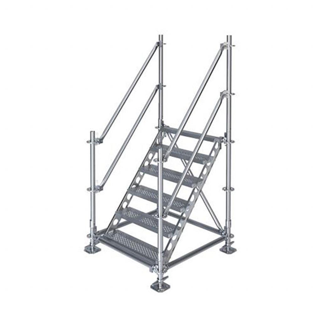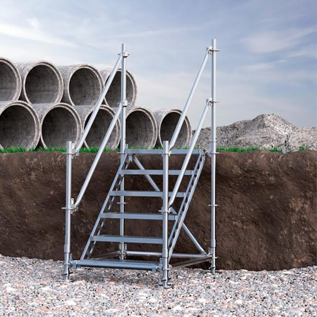 Samonosné venkovní schody od značky Scafom RUX modulárního systému Ringscaff jsou ideální pro použití všude tam, kde potřebujete překonat výškový rozdíl ploch. Lze je použít jako pevné venkovní schodiště k domu, které lze ale také v případě potřeby rozmontovat a přesunout na jiné místo i bez nutnosti používat jakékoliv nářadí. Vhodné také pro použití na stavbě jako součást mobilních stavebních konstrukcí.