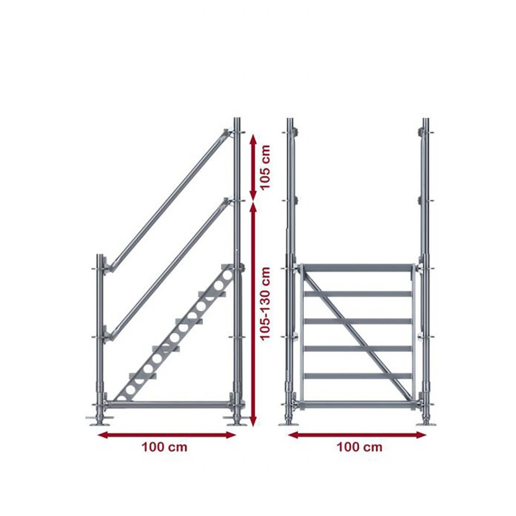 Tyto schody jsou extrémně univerzální, disponují širokými stupni s protiskluzovým povrchem a mají samonosnou kontrukci, díky které je není nutné upevňovat k dalším objekům. Vyrobeno z žárově zinkované oceli, která zaručí odolnost proti korozi.