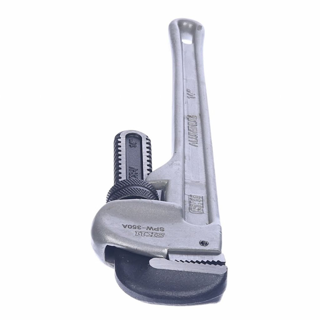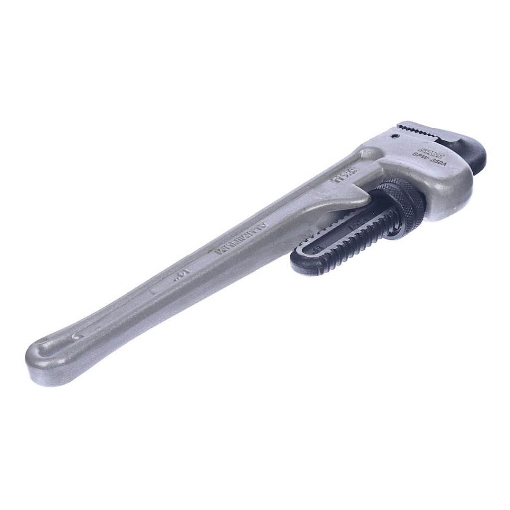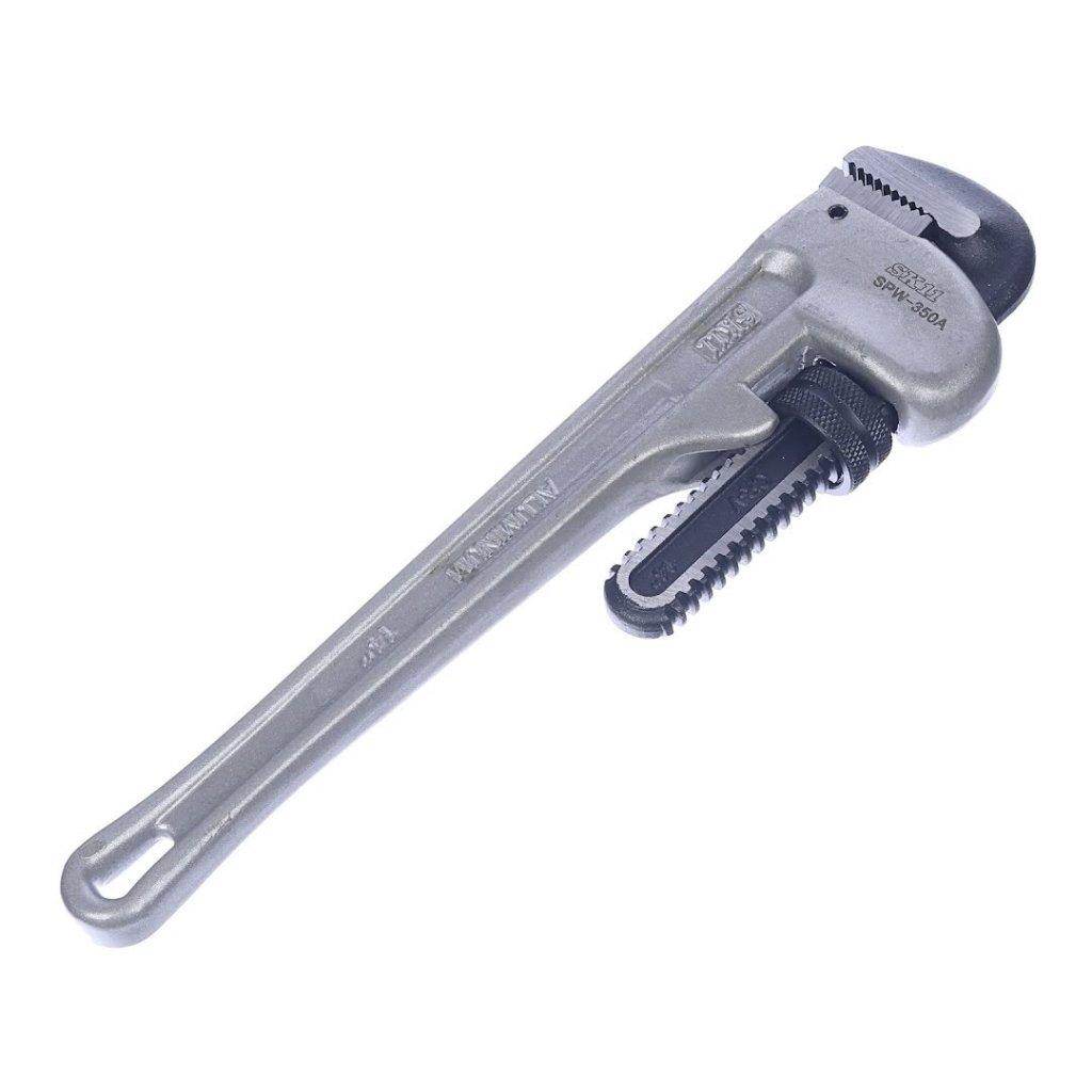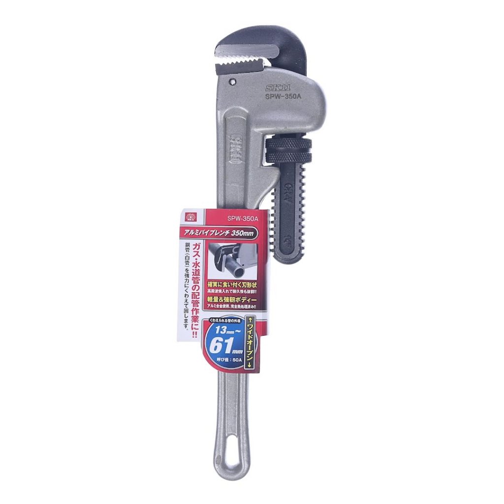 Instalatérské kleště nebo-li hasák od značky SK11, model SPW-350A, je navržen pro přesnost a odolnost při instalatérských a demontážních pracích na strojích. Jeho široce otevírací čelisti jsou ideální pro práci s plynovými a vodovodními trubkami, bezpečně uchopí měděné trubky. Tvar čepele zajišťuje pevné sevření, které je posíleno vysokofrekvenčním kalením pro výjimečnou odolnost. Vyrobený z hliníkové slitiny a plně tepelně zpracovaný, tento klíč nabízí lehký, ale robustní tělo, což z něj činí nezbytný nástroj pro profesionály. S rozměry 80 x 325 x 35 mm a hmotností 965 g zvládne trubky s vnějším průměrem 13~61mm.