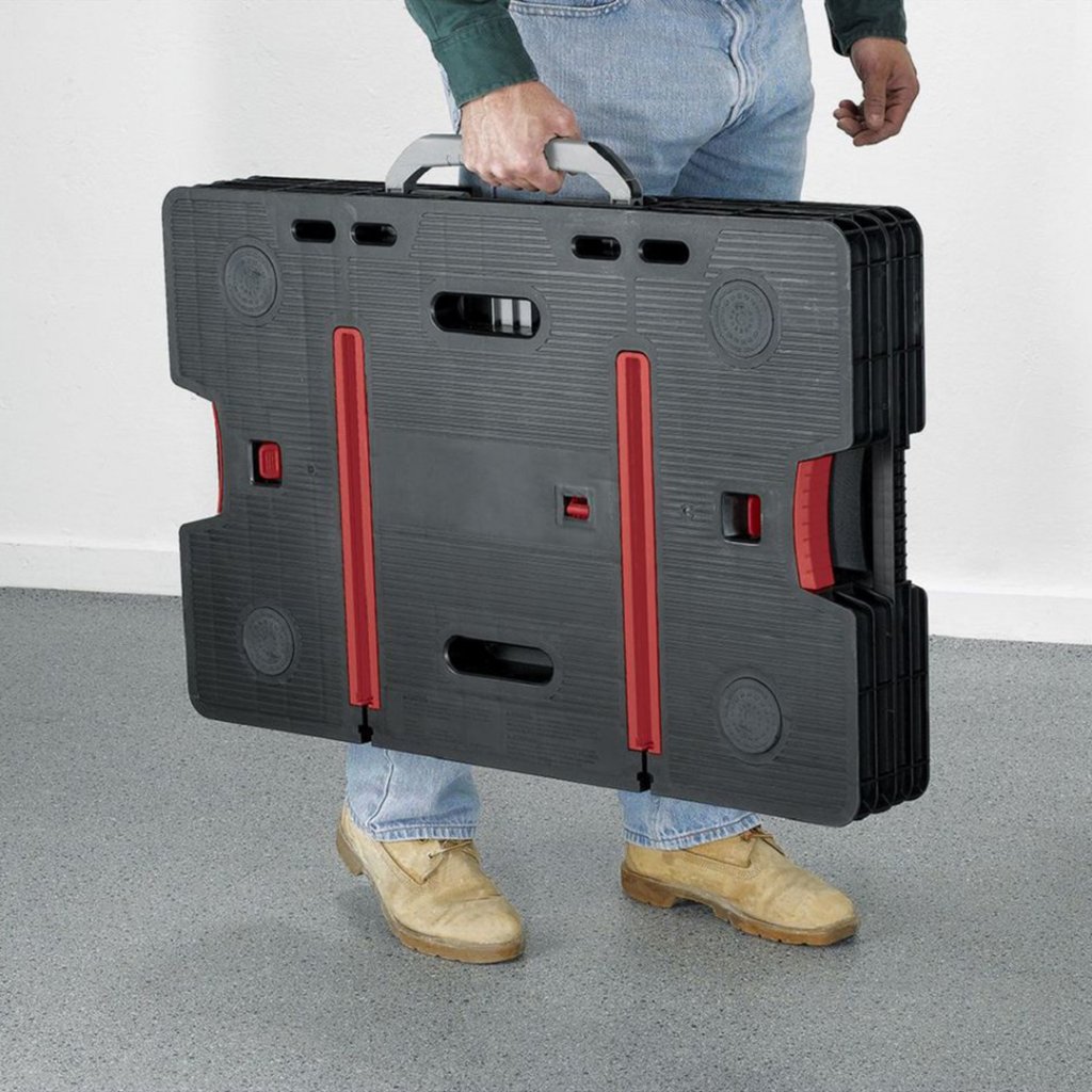 Skládací pracovní stůl KETER. Nízká hmotnost. Maximální nosnost až 450 kg. Velká pracovní plocha. Jeho unikátní skládací systém zaručí rychlou a efektivní práci kdekoliv budete potřebovat. Součástí stolu jsou upínací svěrky, které lze připevnit do konstrukce stolu, takže vám stůl poslouží také jako svěrák.