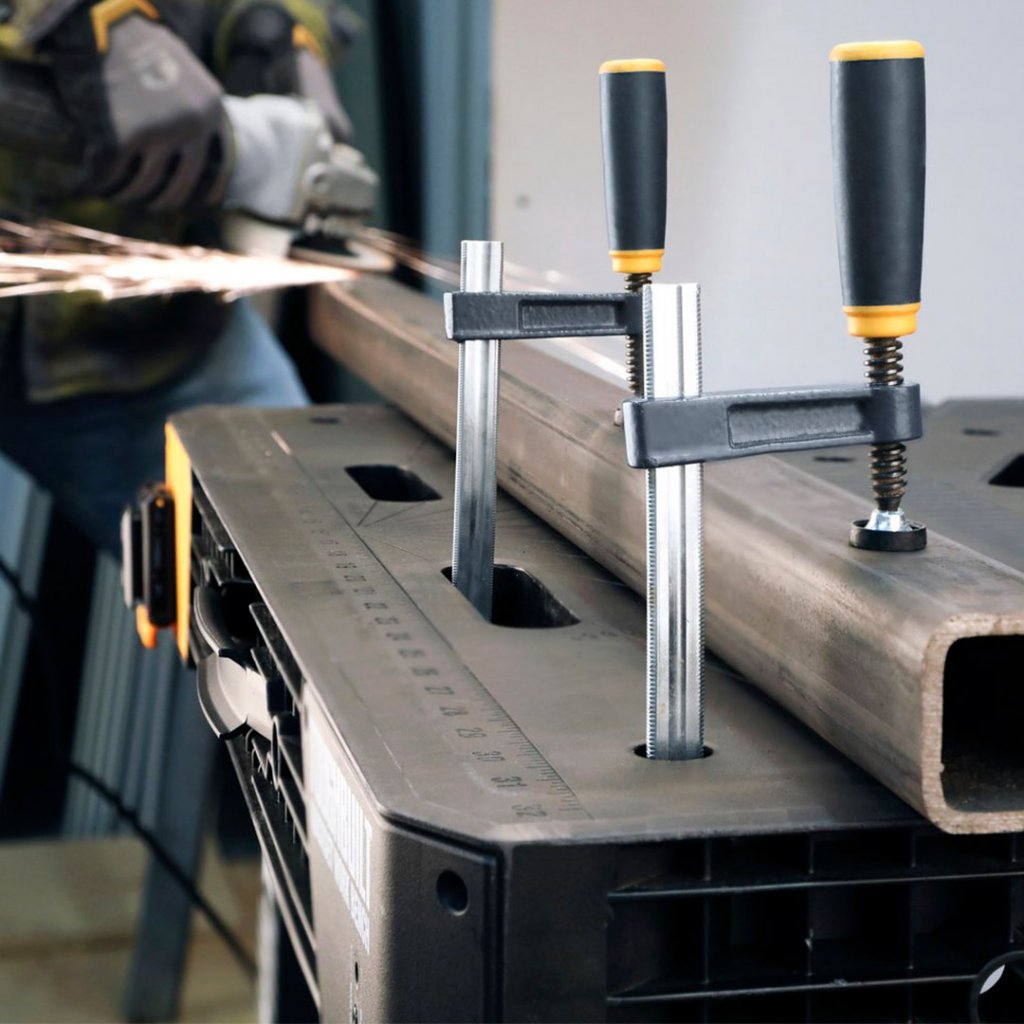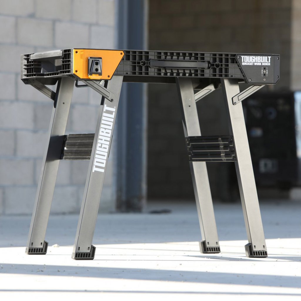 Pracovní stůl ToughBuilt® QuickSet je robustní pracovní stůl, který lze rozložit během několika vteřin. Pro rozložení nohou a vytvoření pracovní plochy stačí stisknout pojistku a zvednout rukojeť. Robustní kovová konstrukce nohou unese až 450 kg. Velká pracovní plocha poskytuje širokou škálu využití: skvěle se hodí k řezání, vrtání, upínání a mnoha dalším účelům. Díky klipům v každém rohu stolu je kompatibilní s rozsáhlou řadou pouzder ClipTech společnosti ToughBuilt pro dokonalou organizaci nářadí a materiálu. Quickset navíc obsahuje několik upínacích otvorů pro svorky či bench dogy. Tento pracovní stůl můžete snadno přepravovat z dílny do dílny a bez problémů se vleze i do osobního auta.