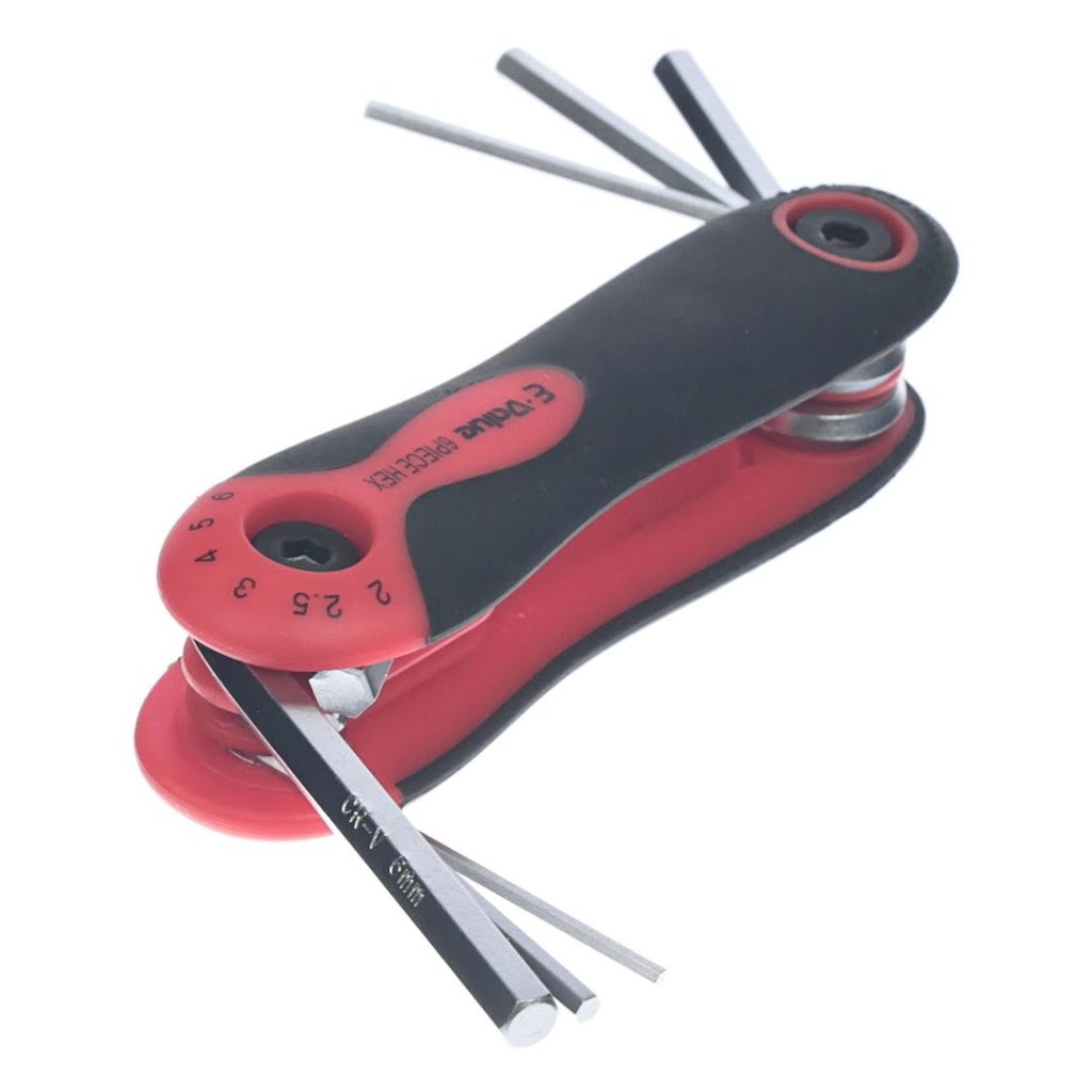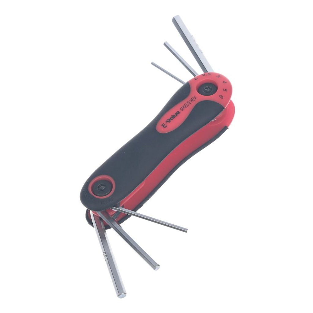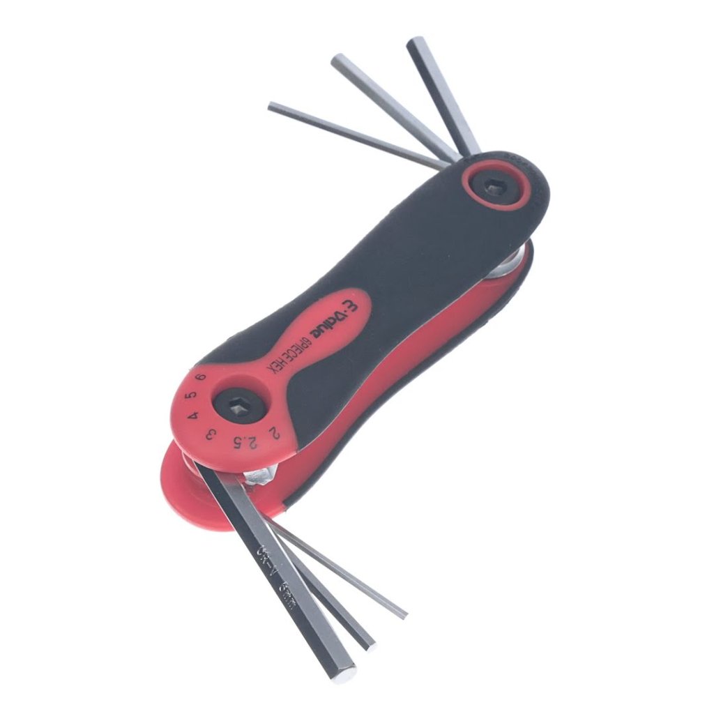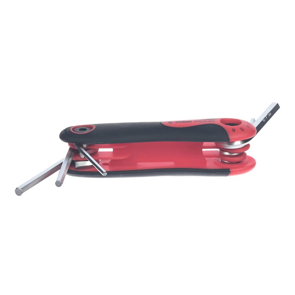 Sada imbusových klíčů E-VALUE, model EHK-3, je všestranný nástroj pro utahování a povolování šestihranných šroubů. Tato sada obsahuje šest velikostí (2, 2.5, 3, 4, 5, 6 mm) pro různé úkoly. Díky skládacímu designu ve stylu nože je kompaktní a snadno přenosná, zatímco ergonomická rukojeť zajišťuje pohodlí při používání. Tato sada imbusových klíčů je spolehlivým doplňkem každé sady nářadí a je ideální pro profesionály i domácí kutily.