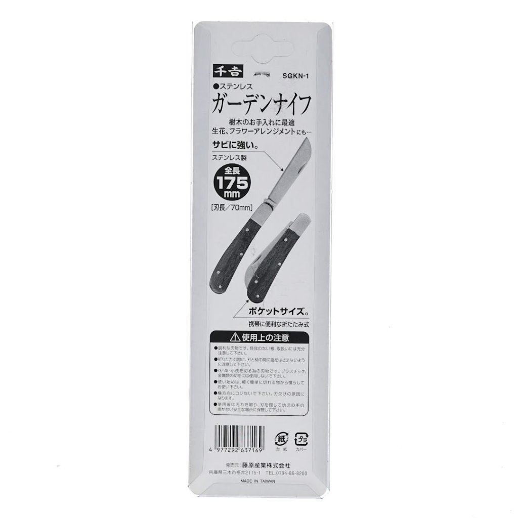 Tento skládací nožík SENKICHI, model SGKN-1, je všestranný nástroj navržený pro zahradní nadšence. Ideální pro řezání květin a malých větví, tento nůž disponuje čepelí z nerezové oceli, která je odolná vůči korozi a zajišťuje snadnou údržbu. Skládací design usnadňuje přenášení a skladování. Nůž má délku 175 mm, když je rozložený, s délkou čepele 70 mm a váží pouze 60 g.