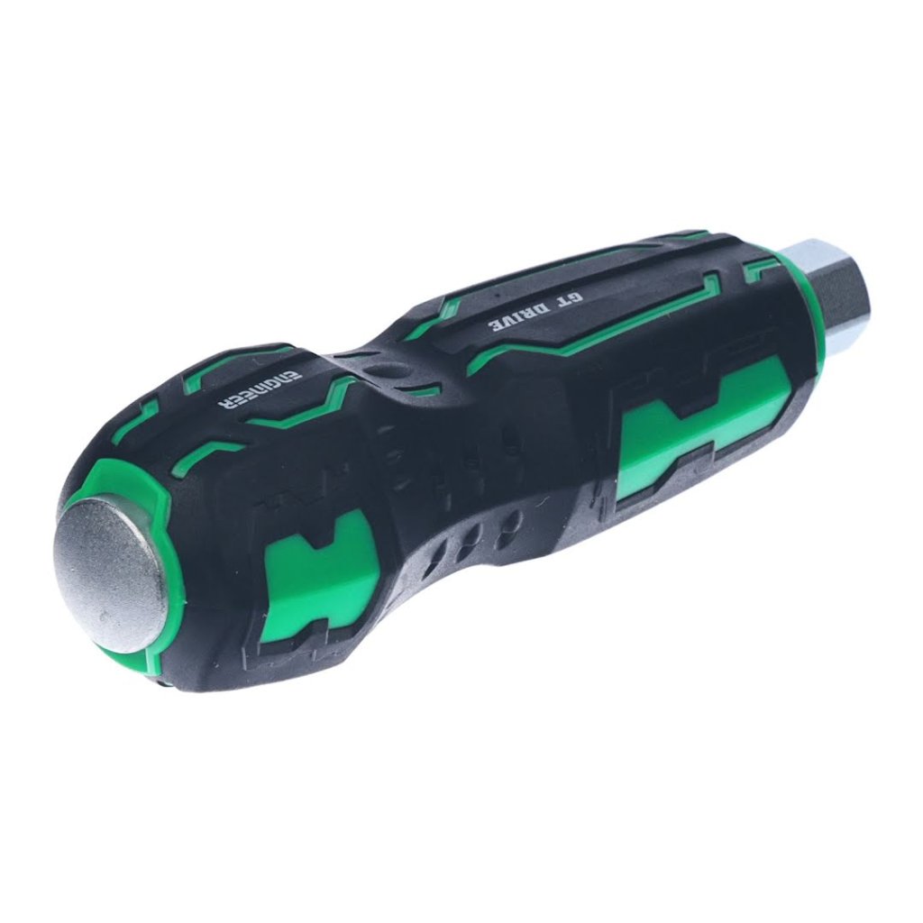Šroubovák s upínáním na bity ENGINEER, model DZ-70, je navržen pro optimální točivý moment s ergonomickým designem. S délkou 121 mm a hmotností 146 g je tento nástroj ideální pro různé úkoly instalace a odstranění šroubů. Disponuje železným jádrem o průměru 10 mm, které přenáší údery kladiva přímo na hrot, a výztuhou pro použití klíče k dosažení vysokého točivého momentu. Vysoce přesný mechanismus na upínání bitů zajišťuje minimální kolísání během provozu.