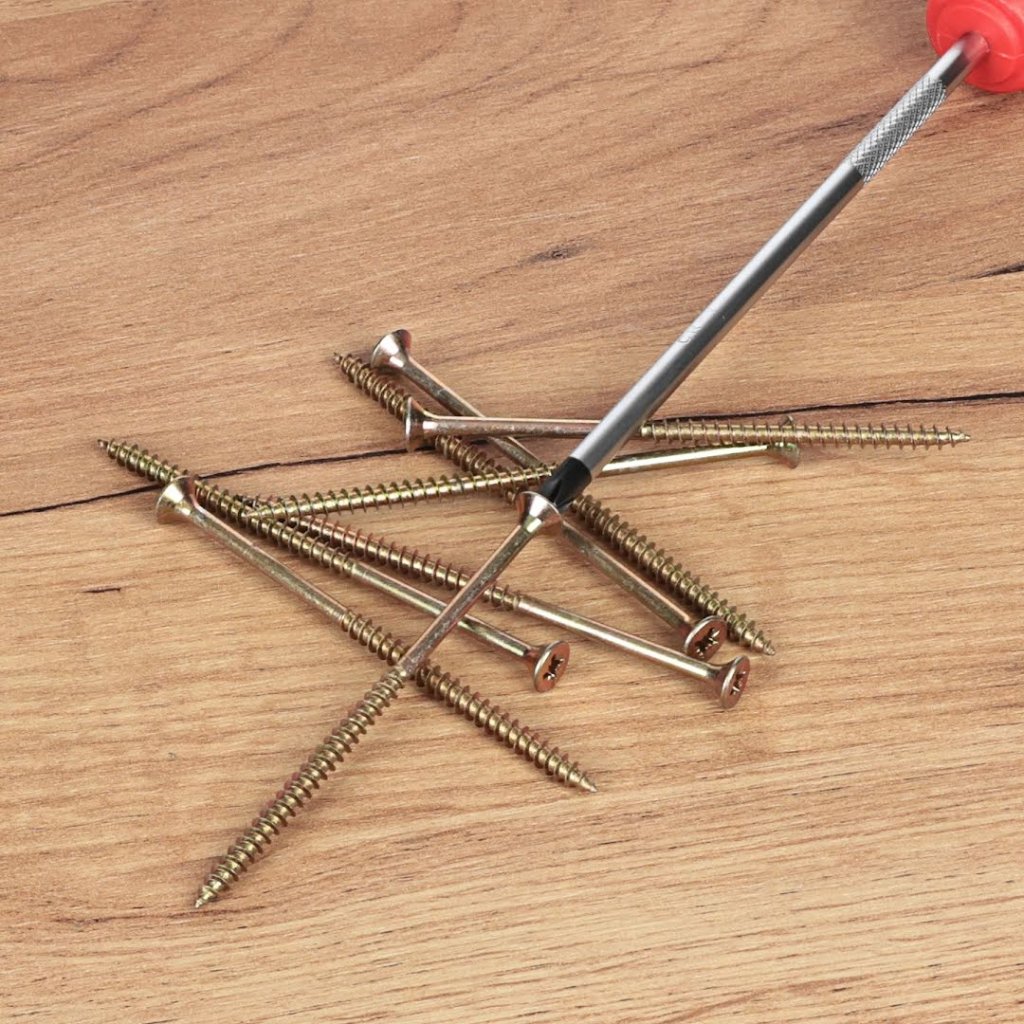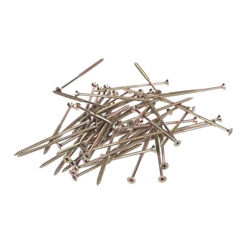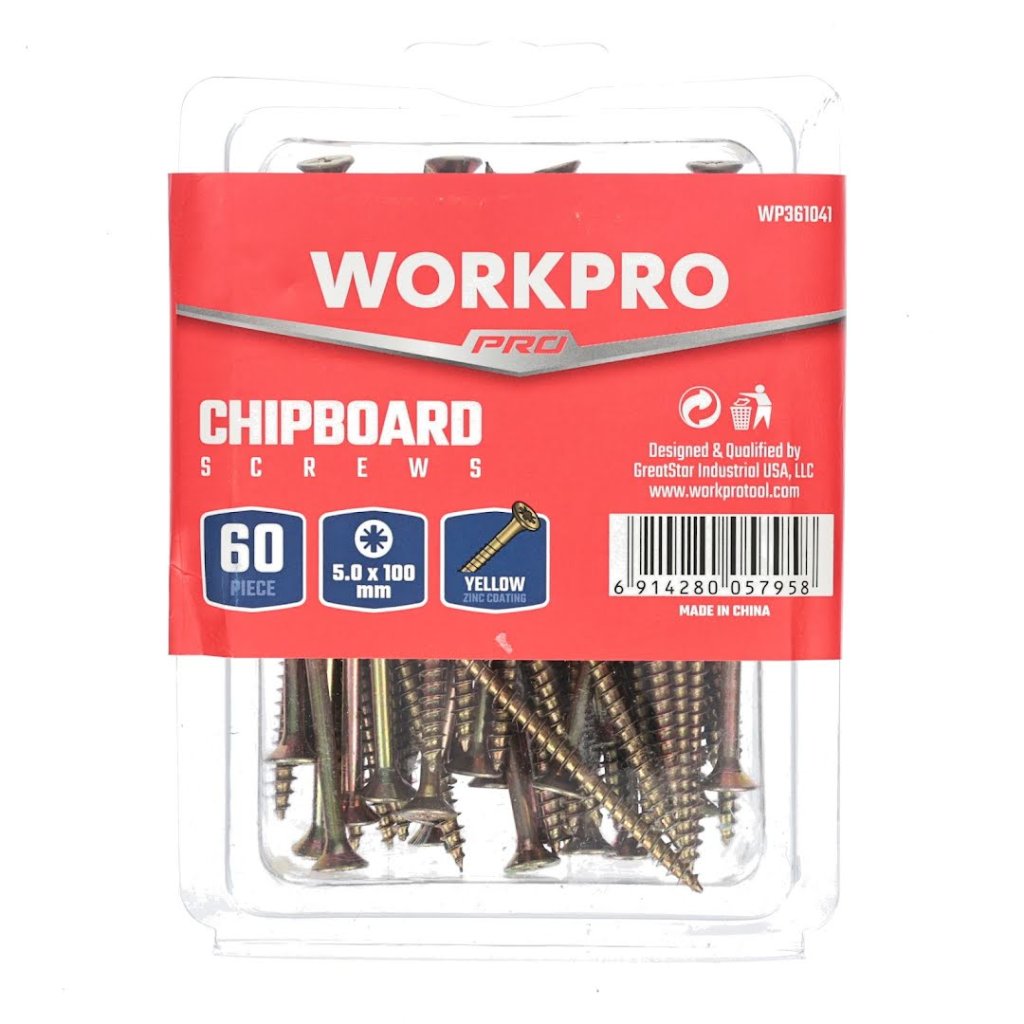Šrouby WORKPRO určené na dřevotřísku, OSB desky, překližku nebo dřevo. Šrouby obsahují zápustku, aby po zavrtání nevyčnívaly, čímž zlepší estetiku materiálu a zabrání nechtěnému vytržení. Balení obsahuje 60 ks kovových šroubů s rozměry 5x100 mm.