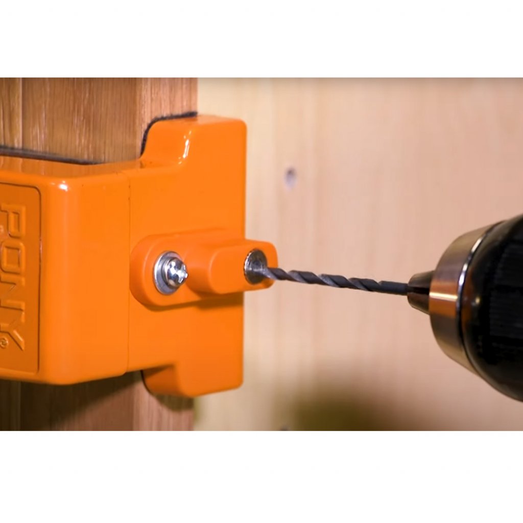 Dosud nejuniverzálnější přípravek od KREG® s funkcemi, které se přizpůsobí různým potřebám řemeslníka. Svorka a vodítko pro vrtání kapsových spojů.