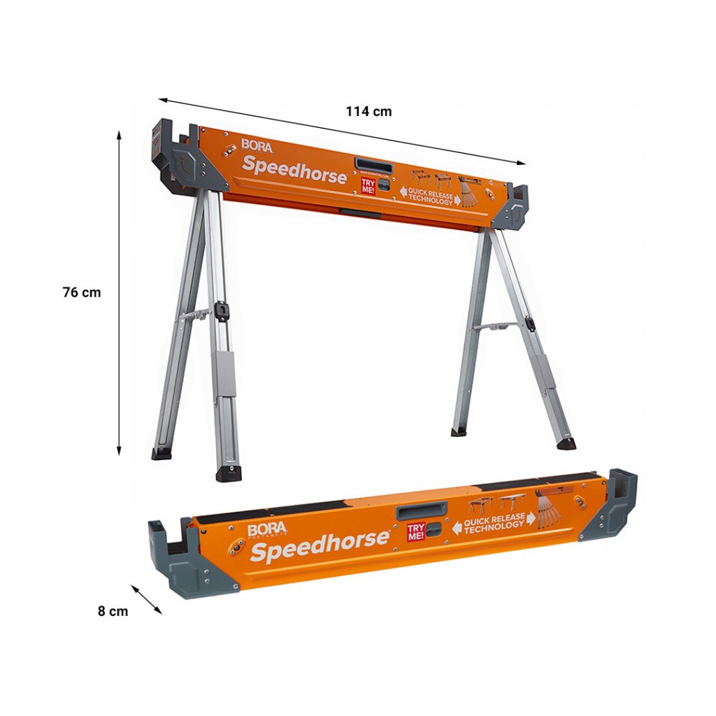 Pracovní a stavební koza BORA je ideálním pomocníkem pro každého řemeslníka, který potřebuje mobilní pracovní stůl a univerzální řezací podpěru. Je vyrobena z ocele s antikorozní úpravou a navržena tak, aby odolala vysoké zátěži pracovního prostředí. Vrchol kozy je opatřen protiskluzovým povrchem a praktickým přenosným držadlem, abyste mohli kozu jednoduše přenášet z místa na místo. Na stranách koz jsou zářezy pro trámky, s jejichž pomocí vytvoříte stabilní pracovní stůl. Na ocelových nohou se nachází skládací řezací podpěra, kterou můžete jednoduše zaklapnout, pokud jí nepoužíváte. Konce nožiček mají protiskluzové špunty pro maximální stabilitu.
