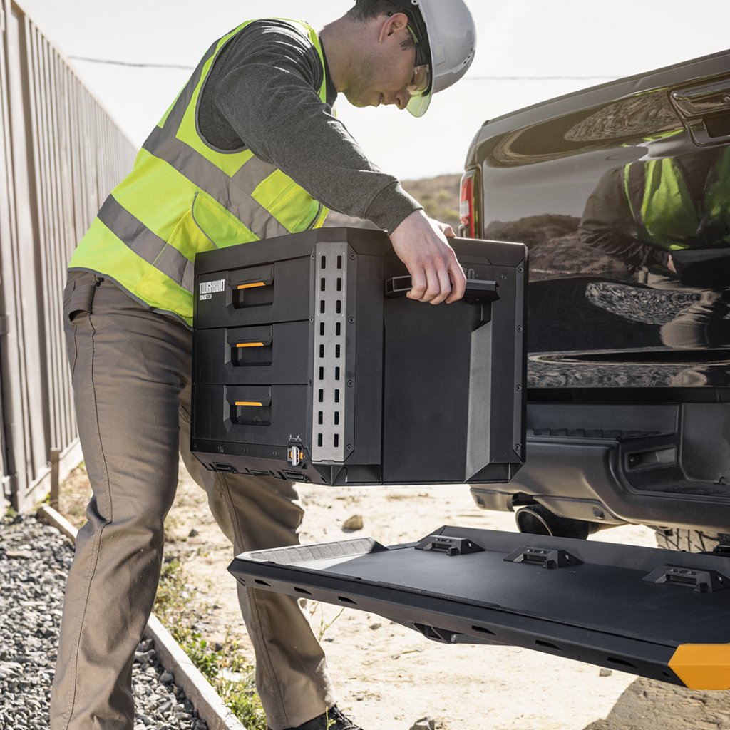 I řemeslo může bejt hodně cool - se systémem StackTech XL 3-Driwer Tool Box od značky TOUGHBUILT®. Pořádný box z odolného plastu na pořádné nářadí. Samozarovnávací systém usnadňuje stohování více boxů na sebe. Díky 3 šuplíkům udržíte pořádek ve vašem nářadí. Uzamykání na bocích. Nemusíte se bát hrubšího zacházení. Jedinečný sebevědomý vzhled, který vzbudí respekt vašich kolegů i konkurence. Další vychytávky od TOUGHBUILT® připnete na zkosené rohy každého boxu.