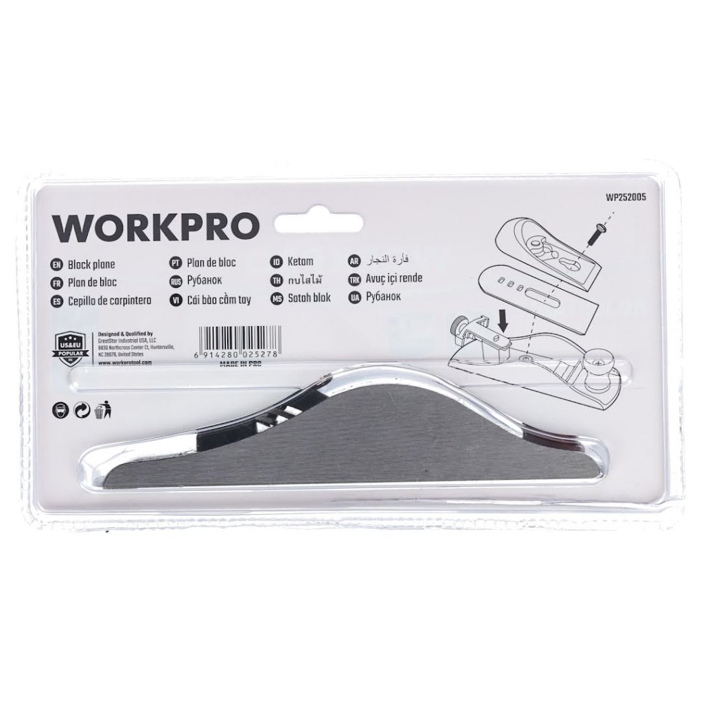 Těžký ruční hoblík WORKPRO s absolutně rovným plazem. Odolná ostrá čepel. Snadno ho nastavíte pomocí seřizovacího šroubu. Hoblík WORKPRO typu Block Plane je ideální pro čištění konců a hran dřeva odstraňováním tenkých odřezků dřeva. Tyto litinové blokové hoblíky se snadno používají a obsahují přední dřevěnou rukojeť pro lepší ovládání. Vyznačují se jedinou tvrzenou a temperovanou ocelovou čepelí nastavenou v mělkém úhlu, což umožňuje čepeli proříznout koncové zrno s větší účinností. Nejlepších výsledků se dosáhne, když hoblík držíte v úhlu až 45 stupňů při tahu nebo tlačení přes hranu dřeva.