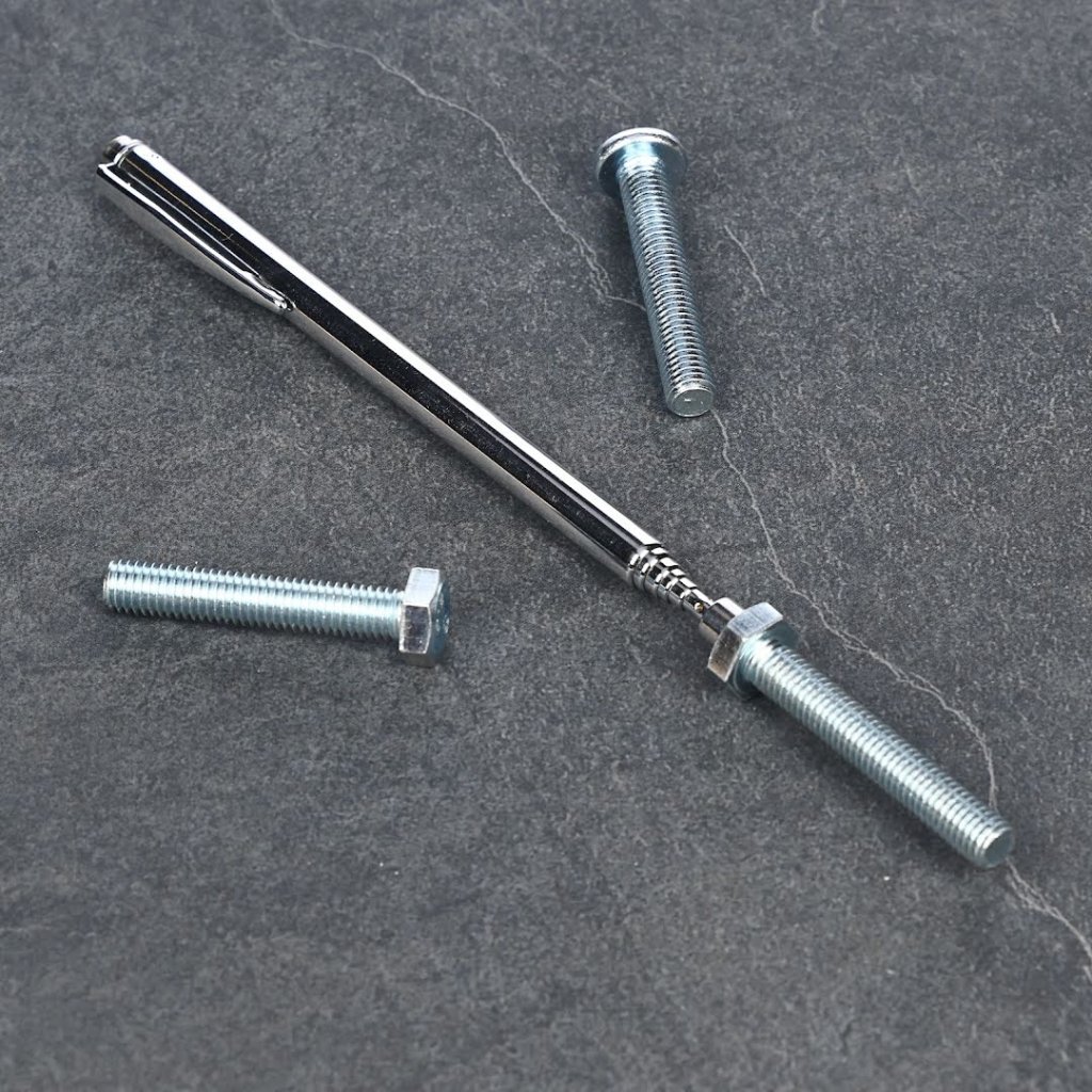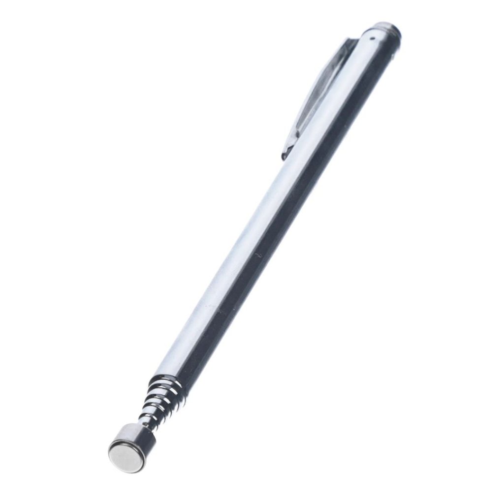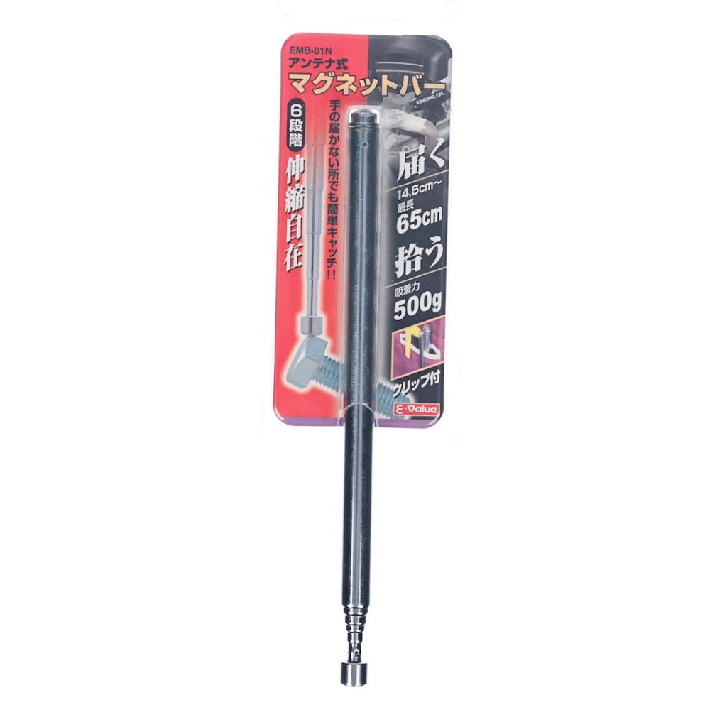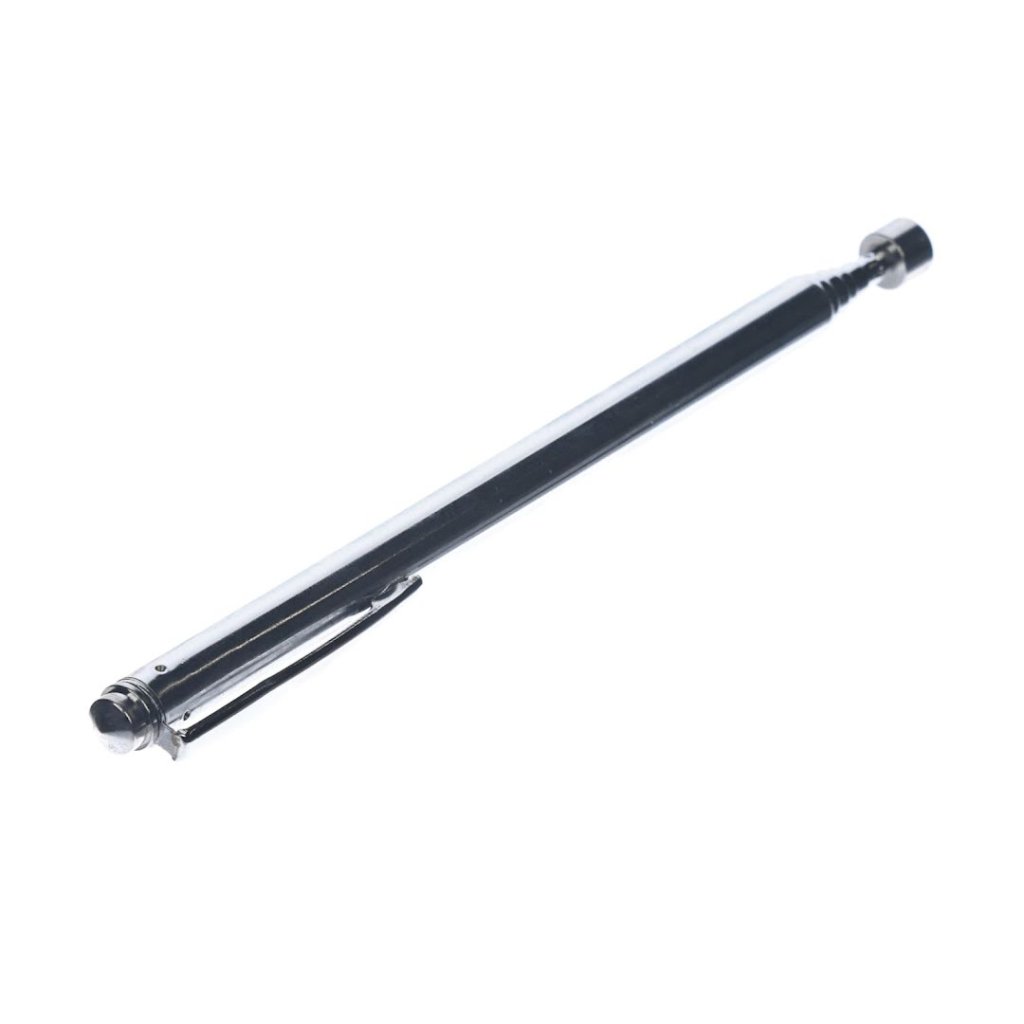 Magnetický extraktor E-VALUE, model EMB-01N, je navržen pro snadné zachytávání šroubů a nástrojů na těžko dostupných místech. Má teleskopický design rozšiřující se z 14,5 cm na 65 cm v 6 nastavitelných etapách, což jej činí ideální pro použití ve stísněných prostorech. Nástroj může zvedat objekty až do 500 g díky svému silnému magnetu a je vybaven praktickým klipem pro snadné nošení a skladování.
