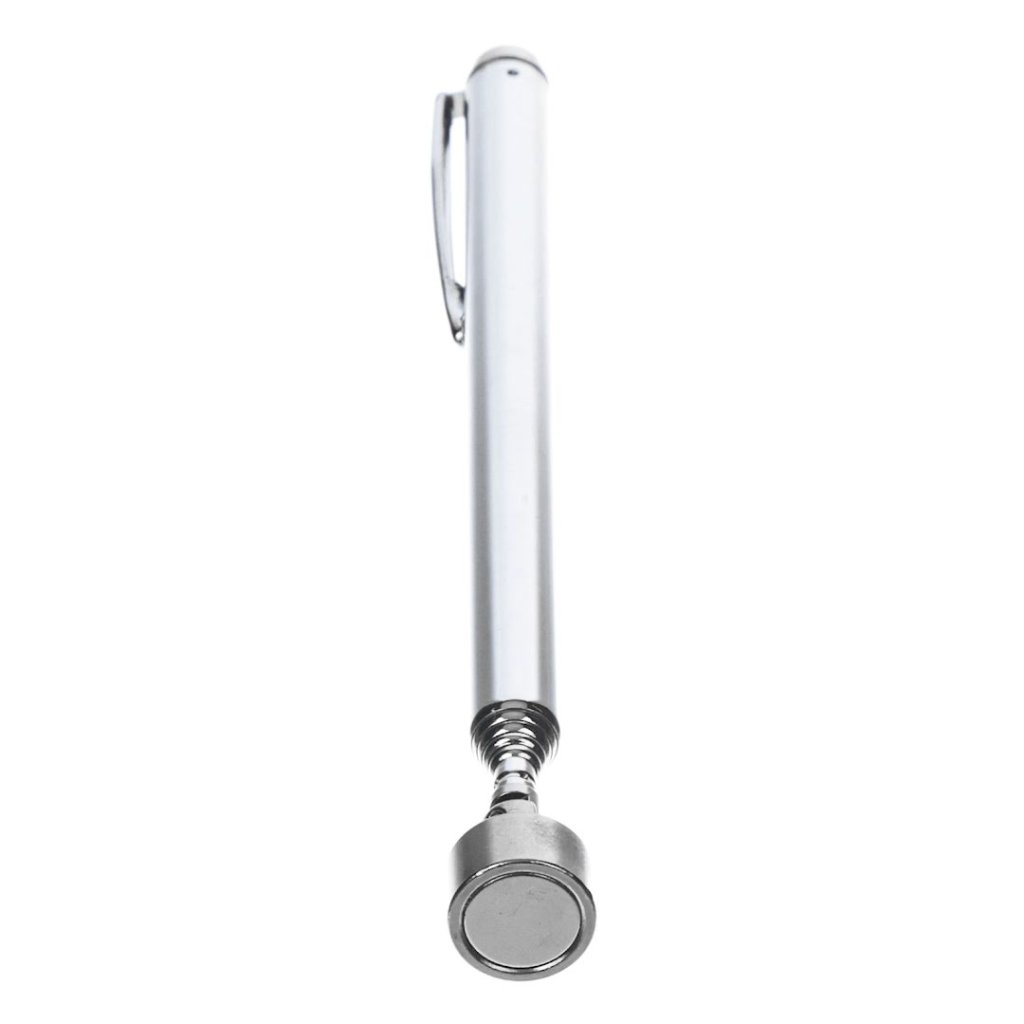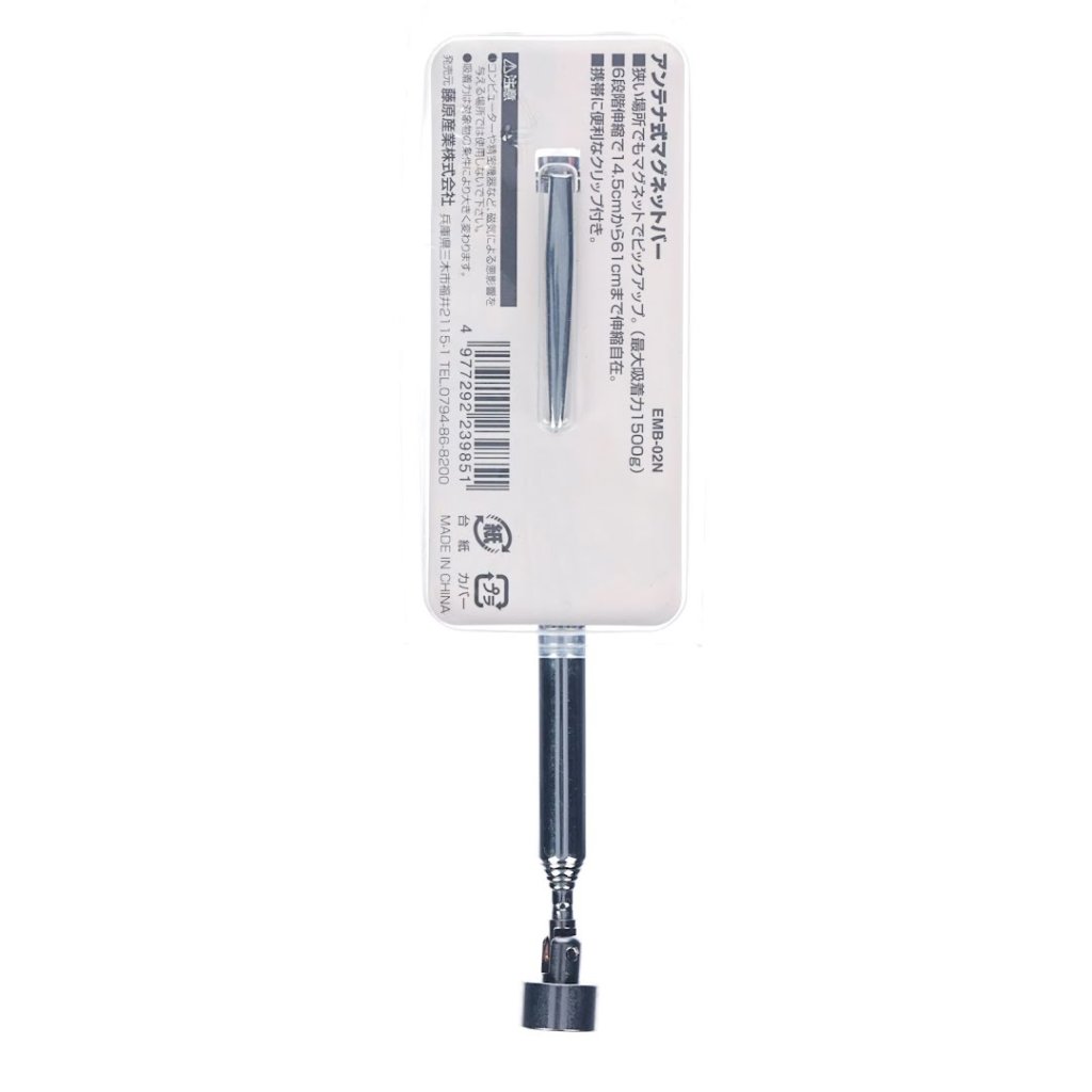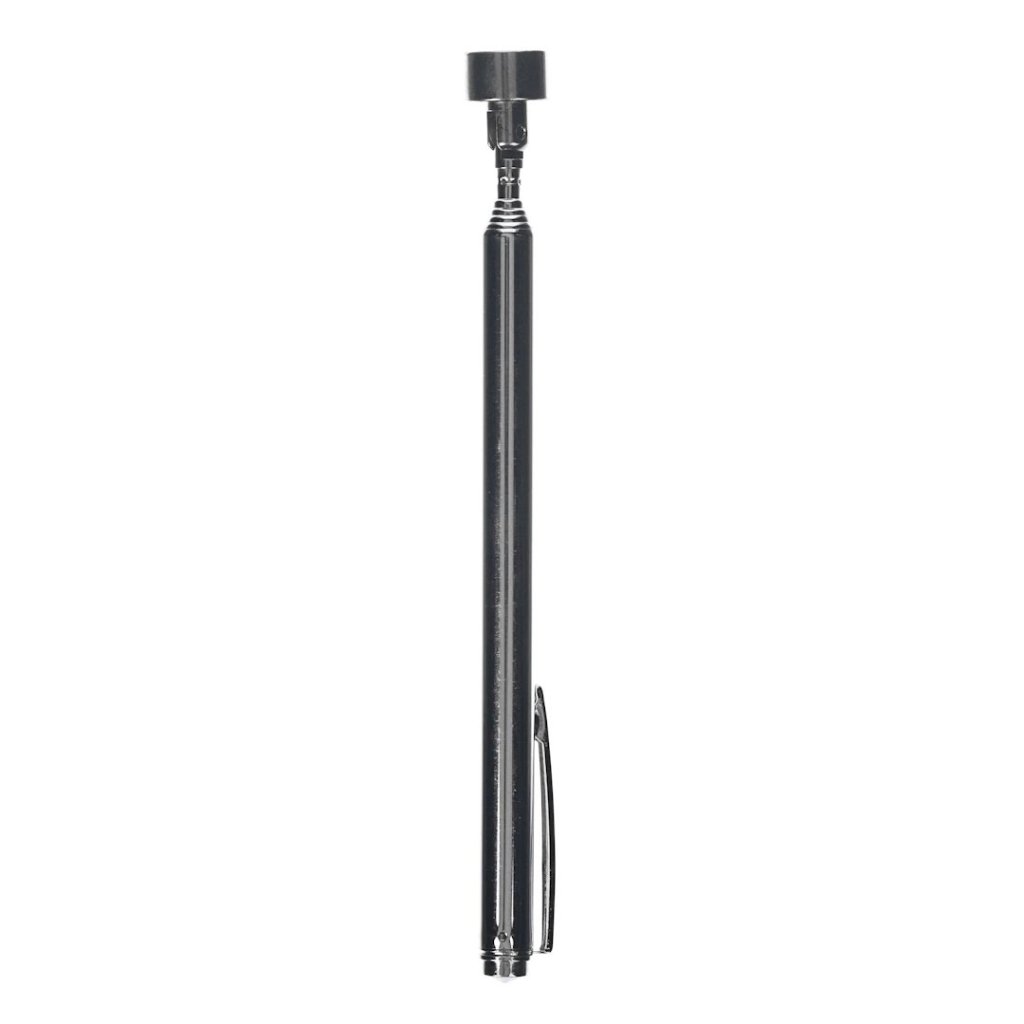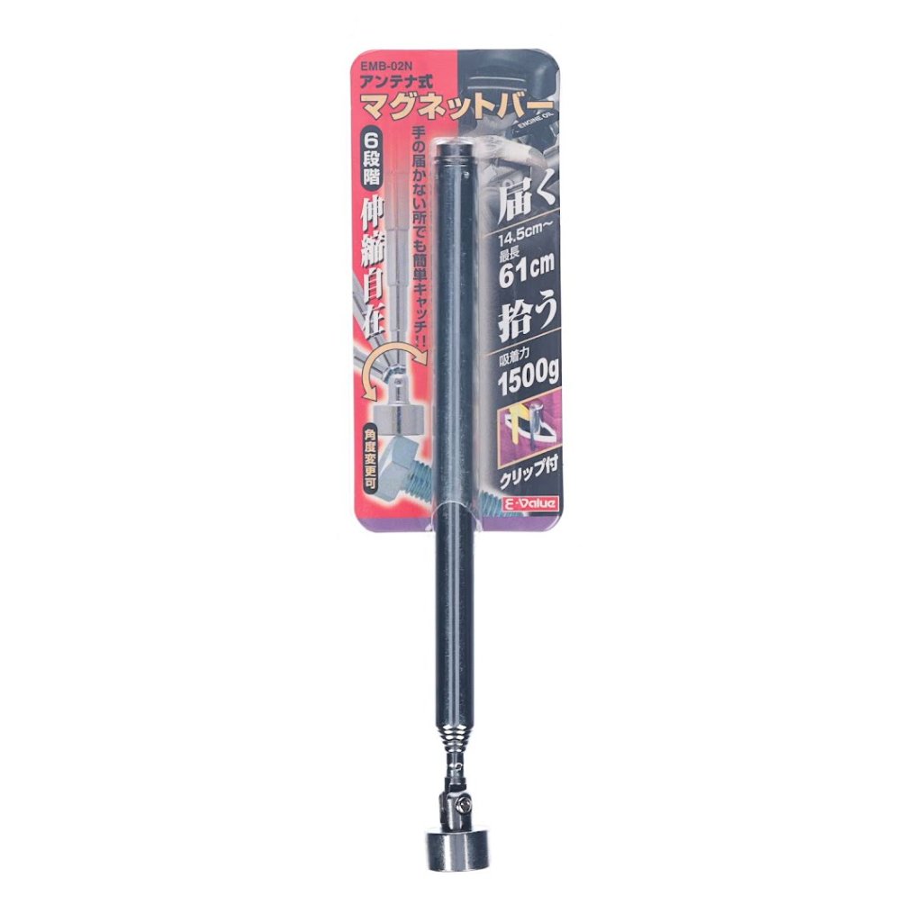 Teleskopický extraktor E-VALUE, model EMB-02N, je univerzální nástroj navržený pro snadné vytahování šroubů a nástrojů z těžko přístupných míst. Má šest nastavitelných délek od 14,5 cm do 61 cm a unese maximální zatížení 1500 g. Magnetická špička může být nakloněna pro přesnost a praktický klip umožňuje snadné přenášení a skladování.