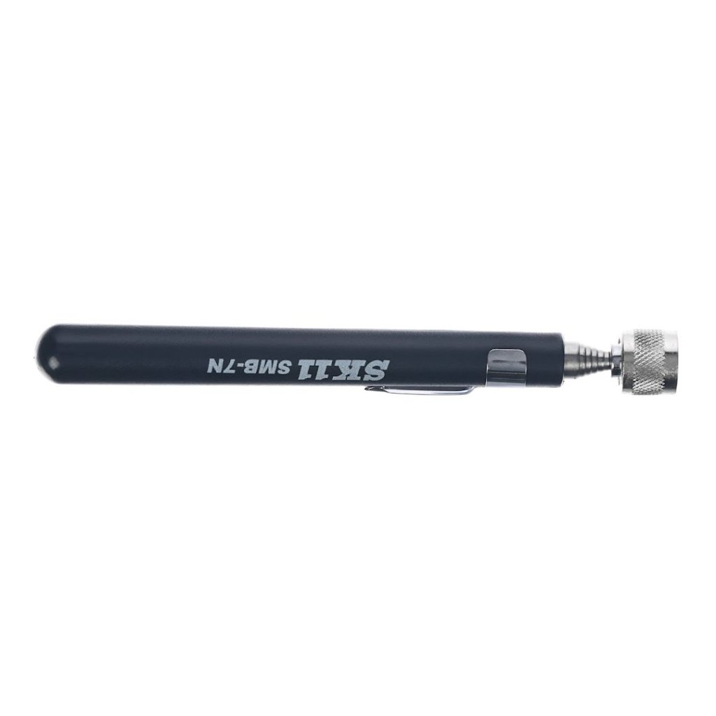 Magnetický extraktor SK11, model SMB-7N, je ideálním řešením pro vytažení šroubů a nástrojů z těžko přístupných míst. Tento nástroj má maximální tažnou sílu 1500 g a je perfektní pro různé úkoly spojené s vytažením předmětů. Její 7-stupňová teleskopická schopnost se rozšiřuje z 16,5 cm až na 84 cm, což ji činí velmi univerzální. Magnetický uzávěr zabraňuje nežádoucí přitažlivosti k okolním kovům během zasouvání a pohodlný klip na kapsu zajišťuje snadnou přenositelnost.