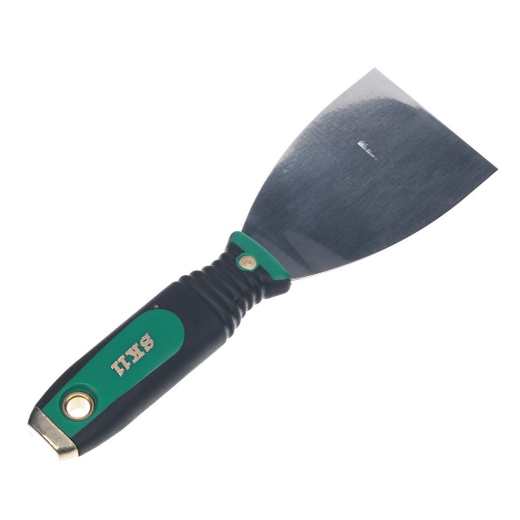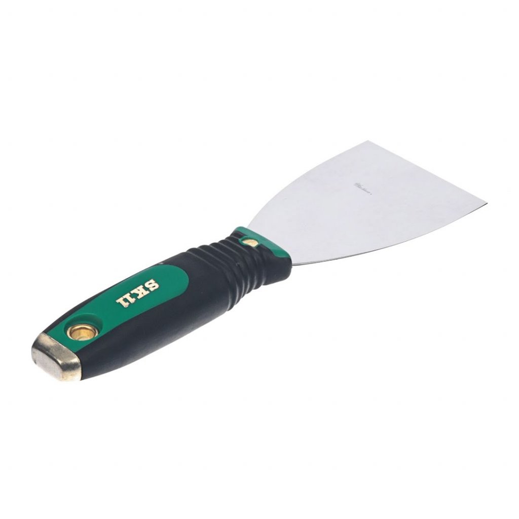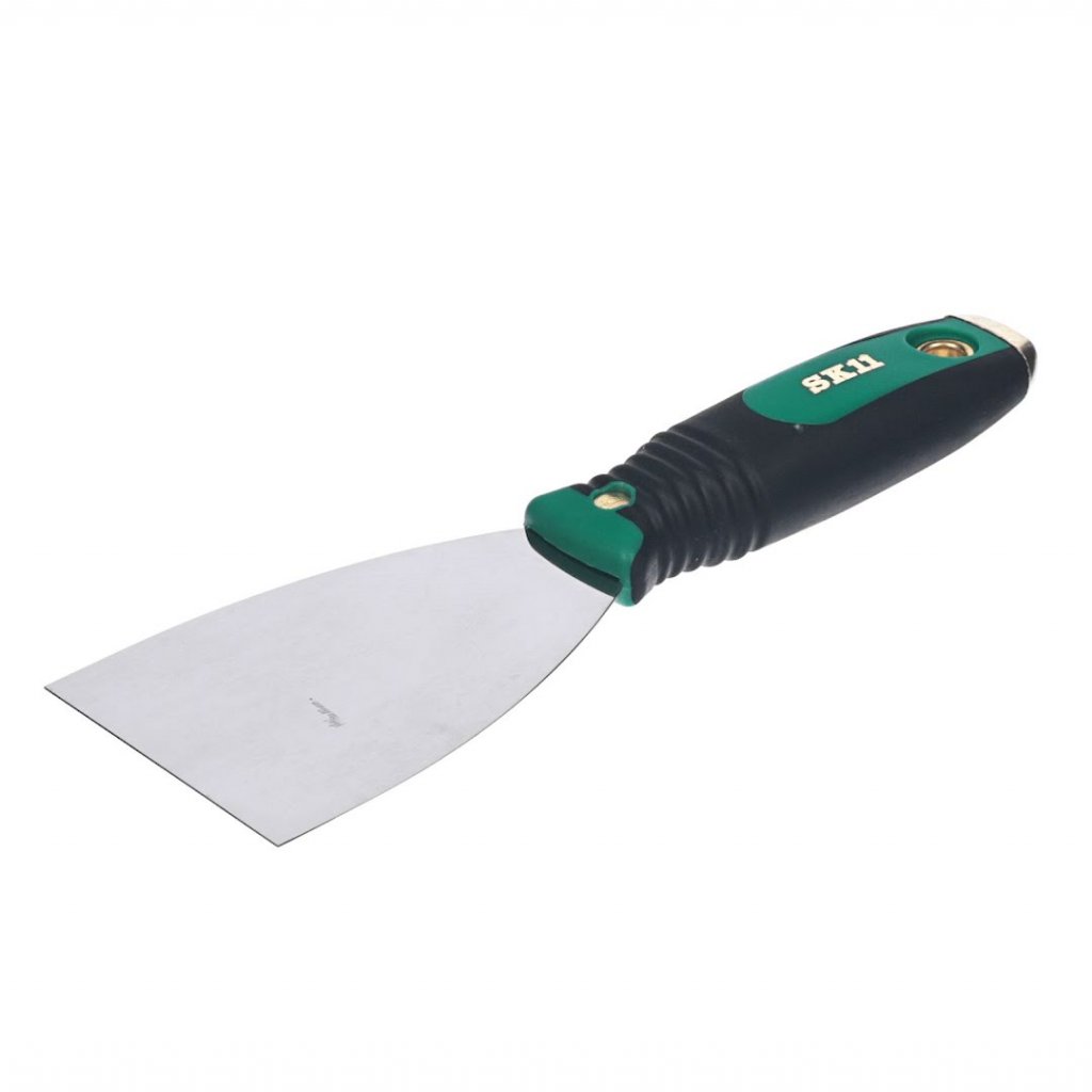 SK11 Špachtle, model SGS-2, je nezbytným nástrojem pro přesné a snadné odstraňování barvy, tapet nebo rzi. Díky nerezové čepeli, která je snadno čistitelná je tato špachtle ideální pro náročné úkoly. Její 75 mm široká a tenká čepel je vysoce flexibilní, ideální pro pronikání pod vrstvy barvy, aniž by poškodila podkladový povrch. Nástroj má měkkou rukojeť, kterou lze bezpečně udeřit kladivem pro zvýšení síly.